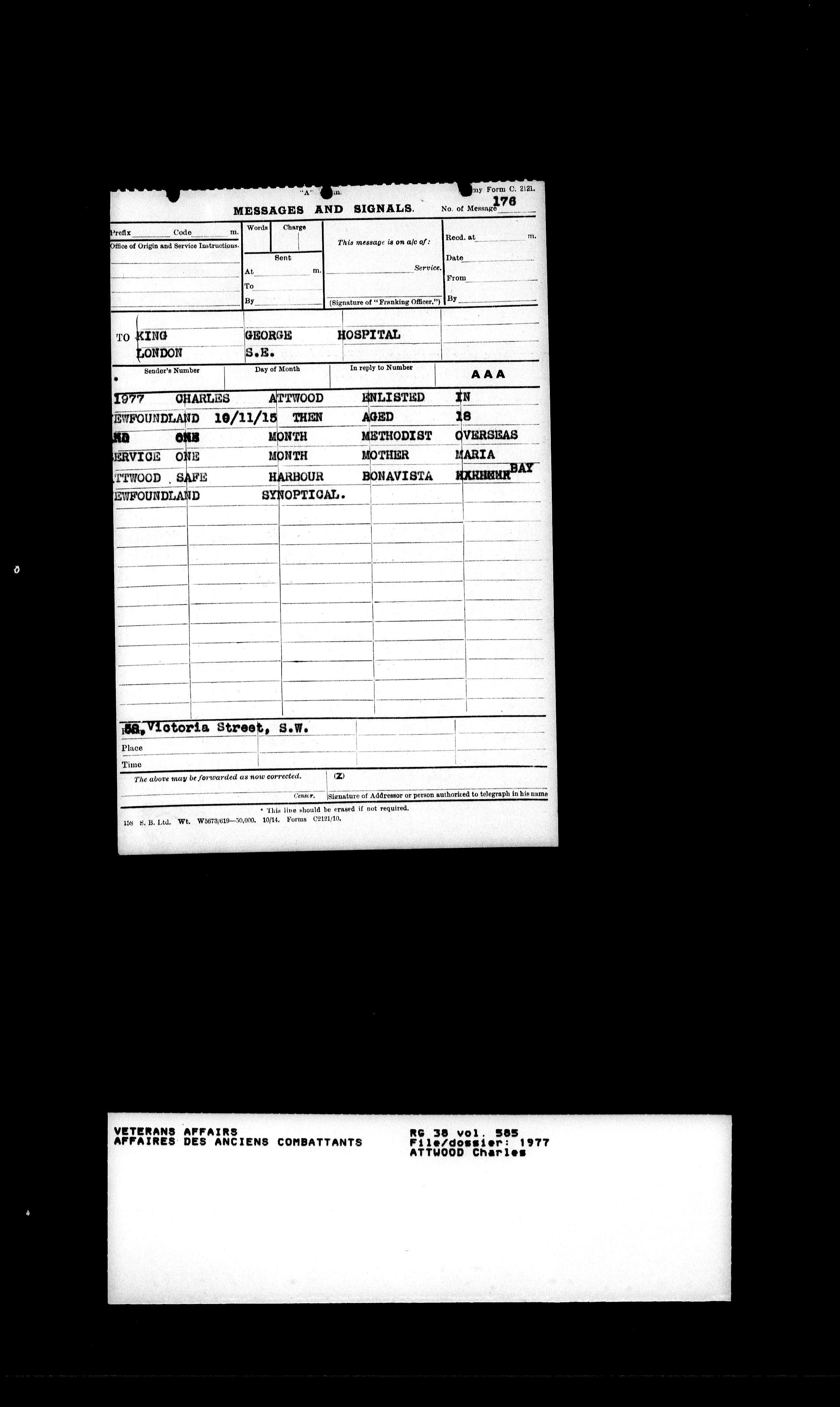Military service files for members of the Royal Newfoundland Regiment and bandsmen and the Newfoundland Forestry Corps (1914-1919) - 18128