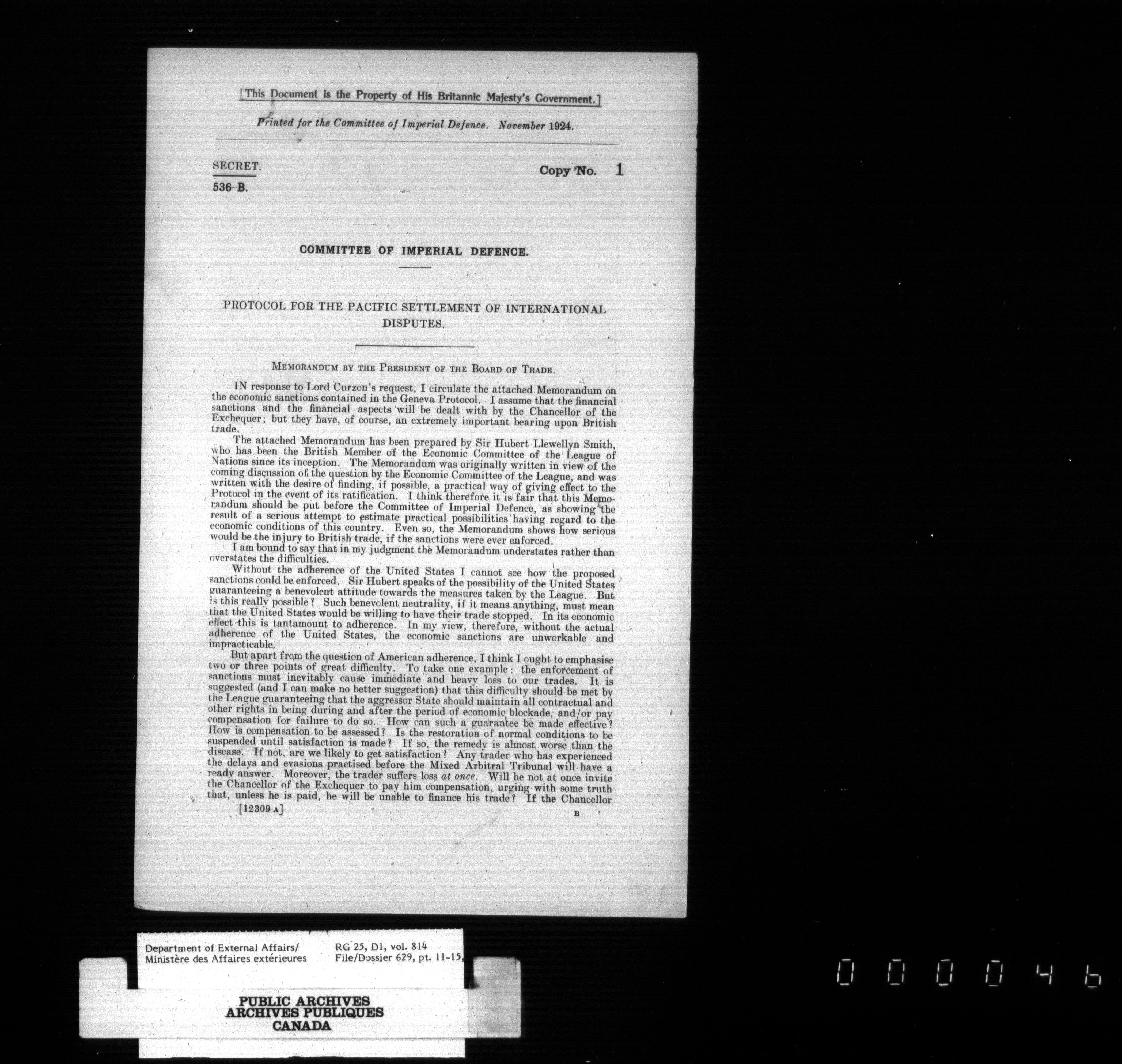 Department of External Affairs : Office of the Under-Secretary of State for External Affairs - 1813