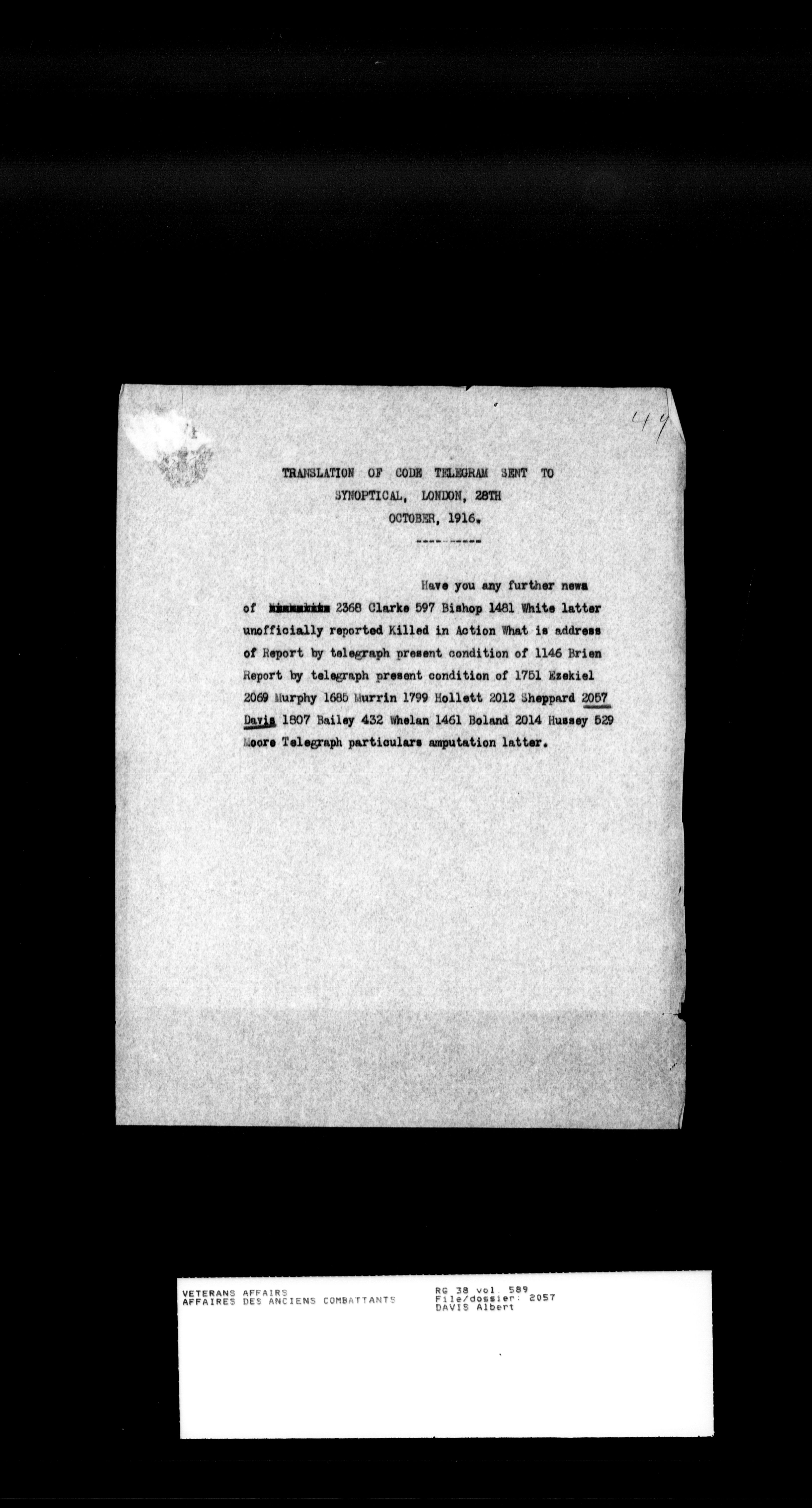 Military service files for members of the Royal Newfoundland Regiment and bandsmen and the Newfoundland Forestry Corps (1914-1919) - 18133