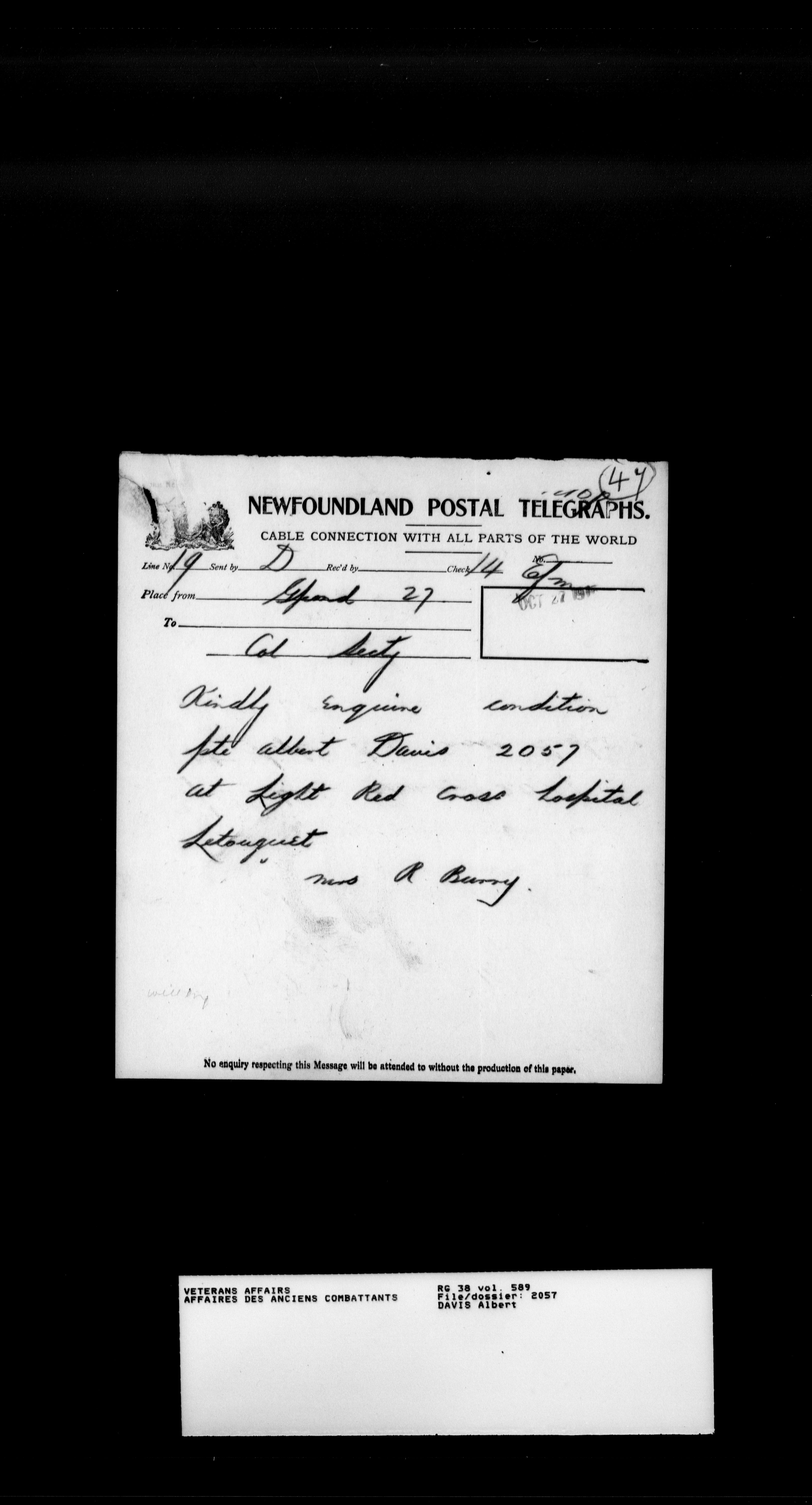 Military service files for members of the Royal Newfoundland Regiment and bandsmen and the Newfoundland Forestry Corps (1914-1919) - 18133