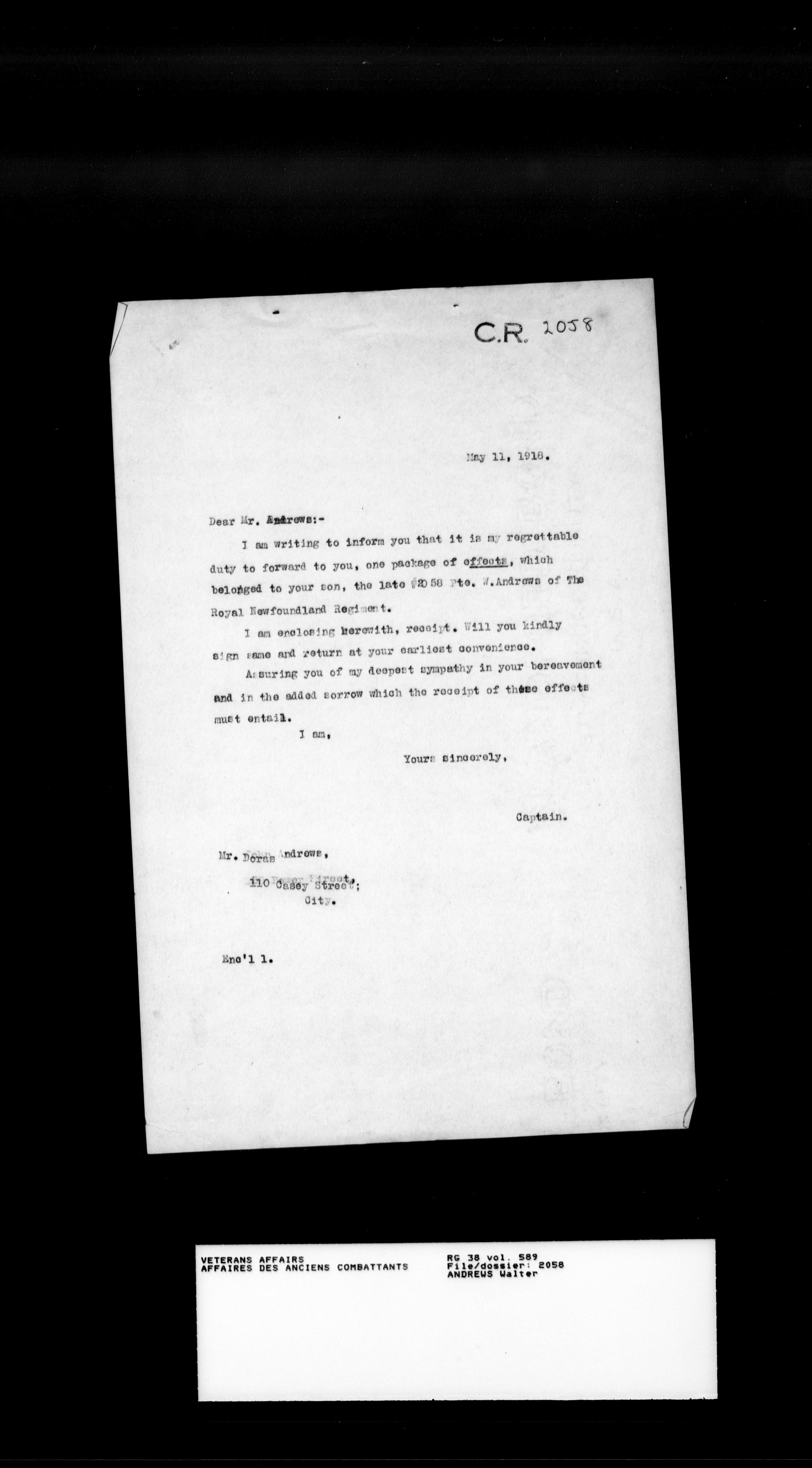 Military service files for members of the Royal Newfoundland Regiment and bandsmen and the Newfoundland Forestry Corps (1914-1919) - 18133