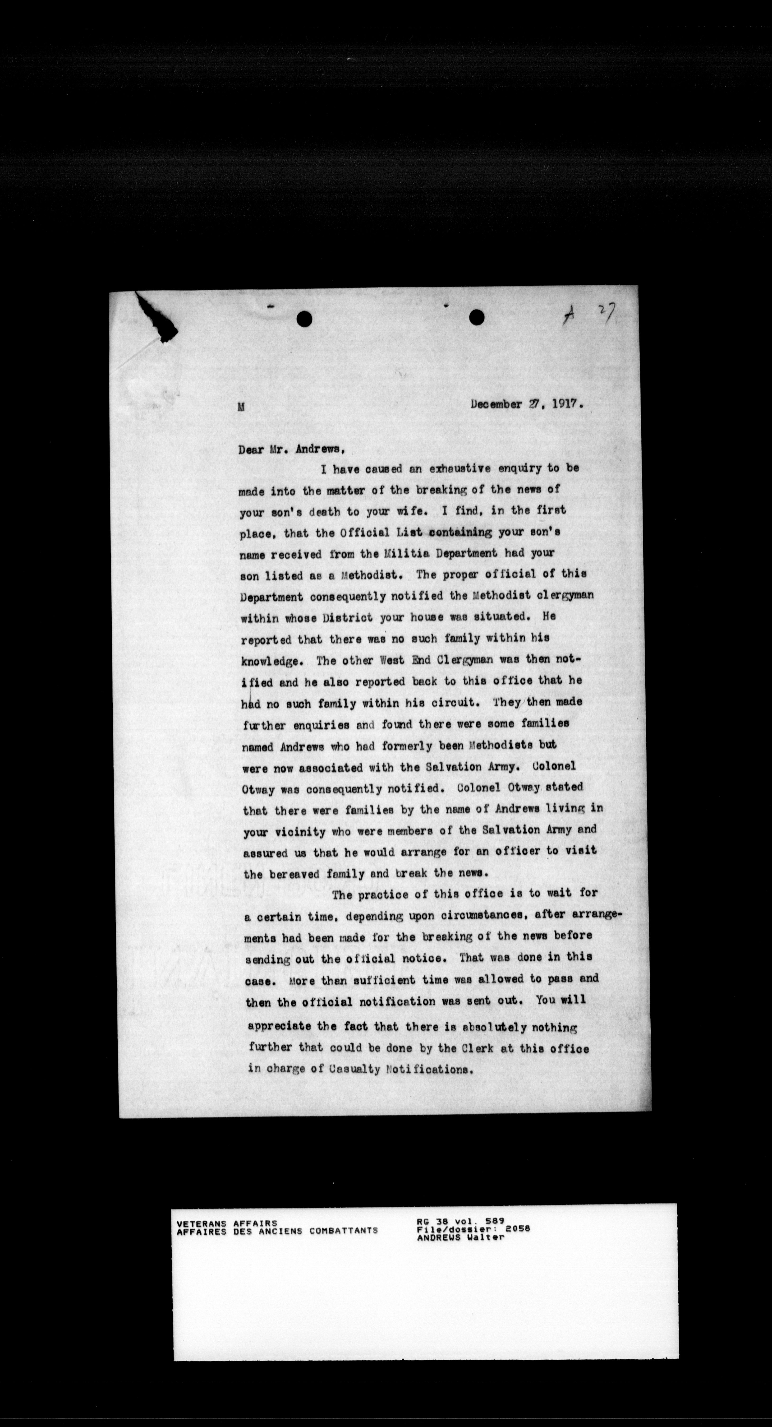 Military service files for members of the Royal Newfoundland Regiment and bandsmen and the Newfoundland Forestry Corps (1914-1919) - 18133