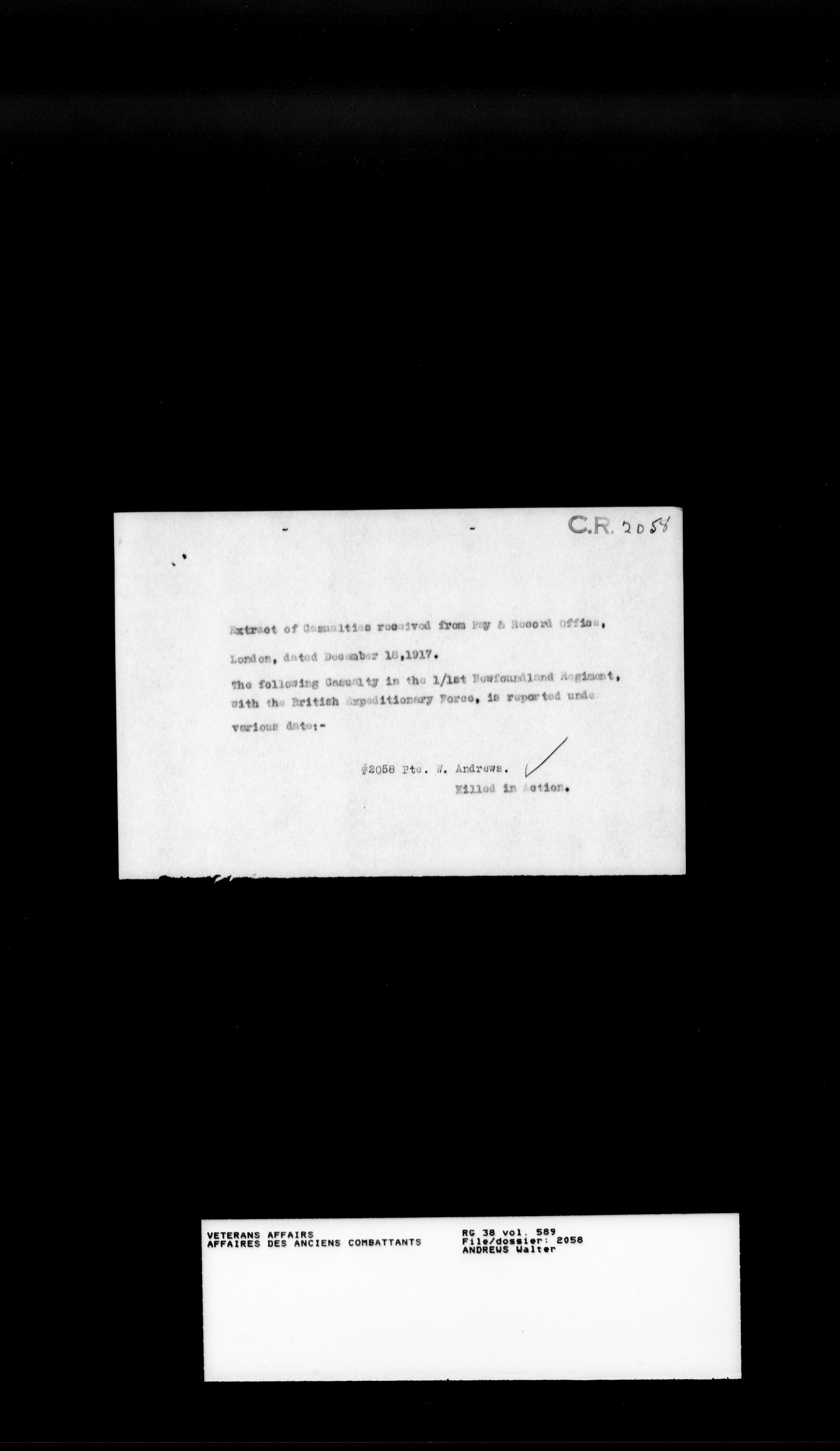 Military service files for members of the Royal Newfoundland Regiment and bandsmen and the Newfoundland Forestry Corps (1914-1919) - 18133