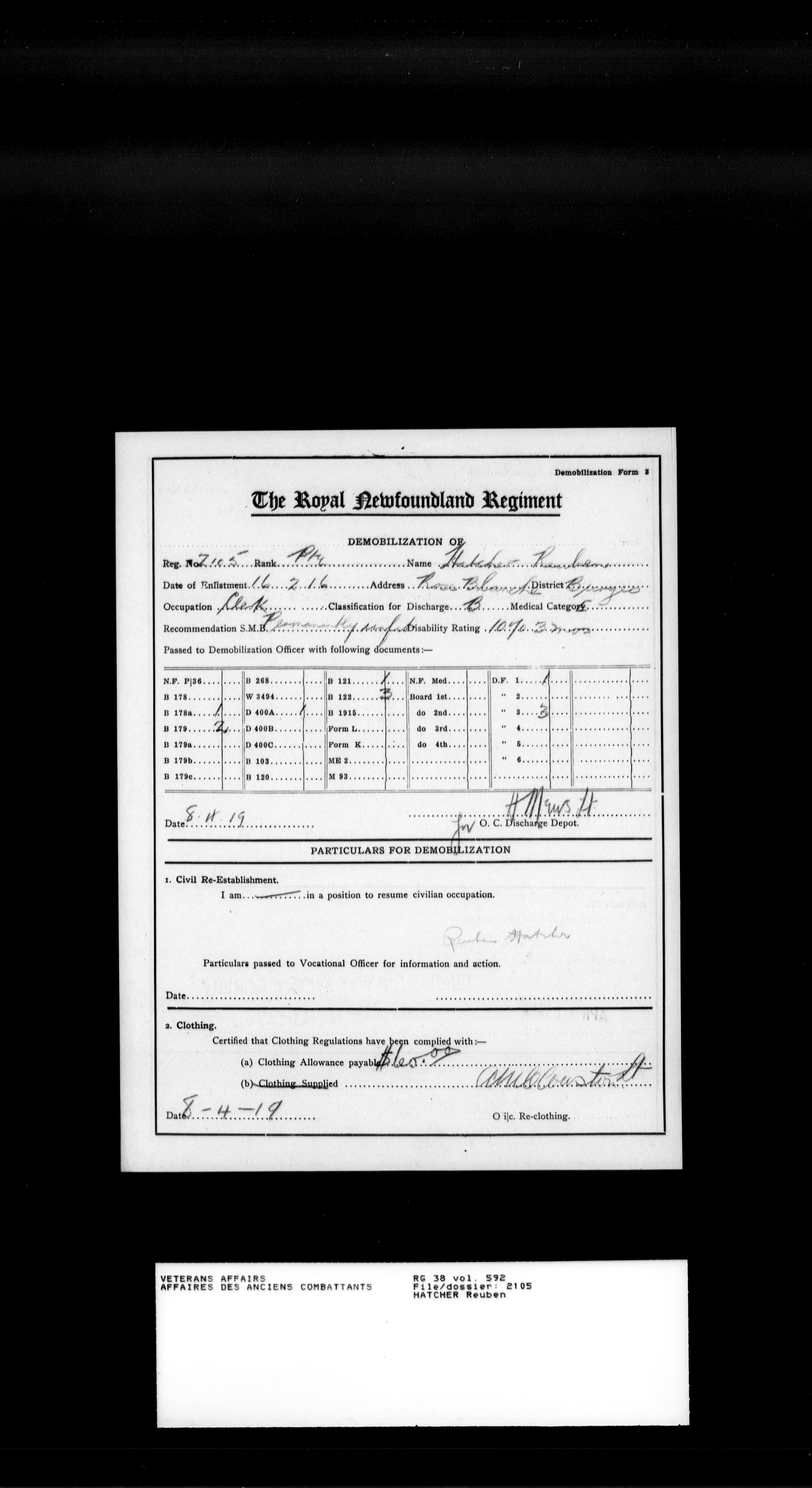 Military service files for members of the Royal Newfoundland Regiment and bandsmen and the Newfoundland Forestry Corps (1914-1919) - 18135