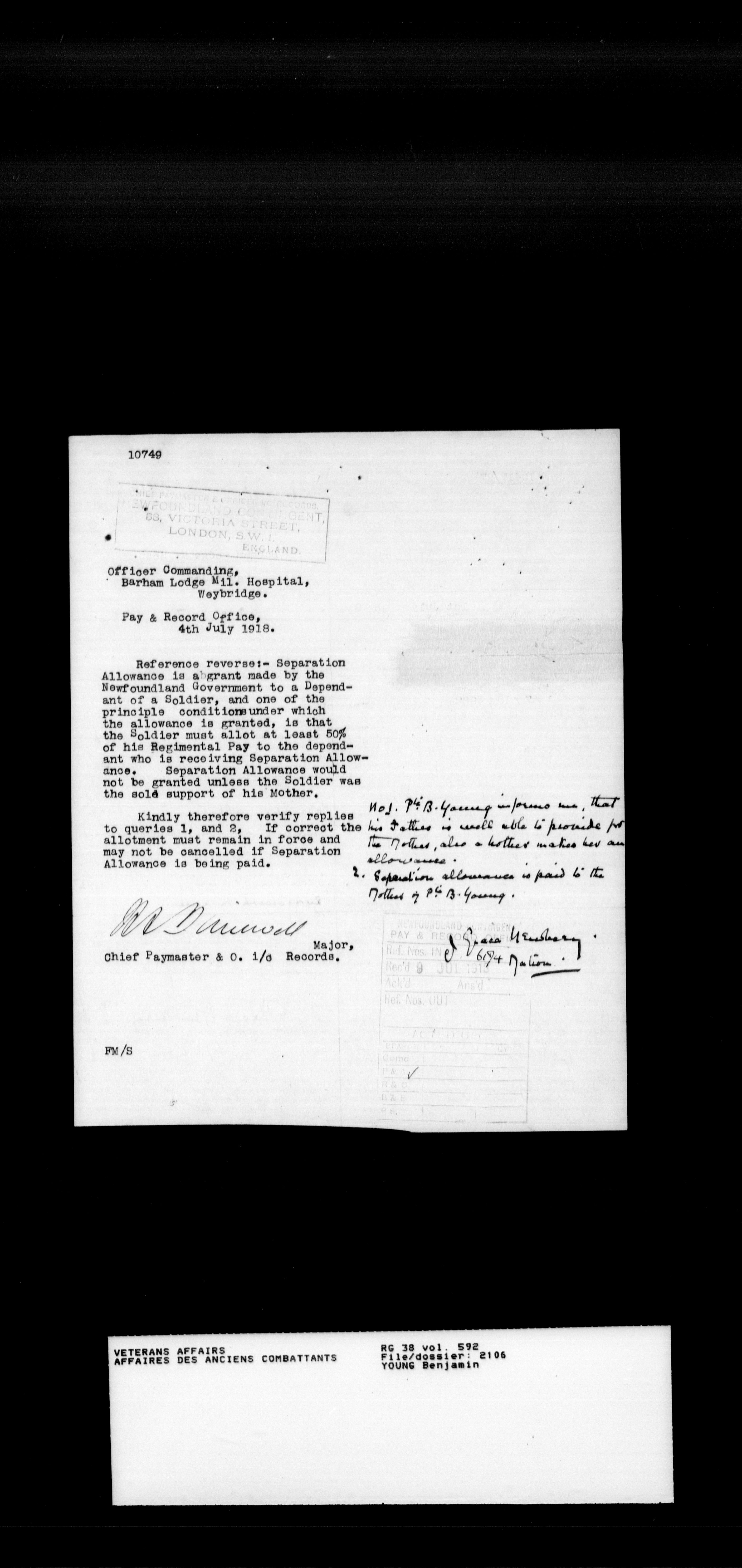 Military service files for members of the Royal Newfoundland Regiment and bandsmen and the Newfoundland Forestry Corps (1914-1919) - 18136