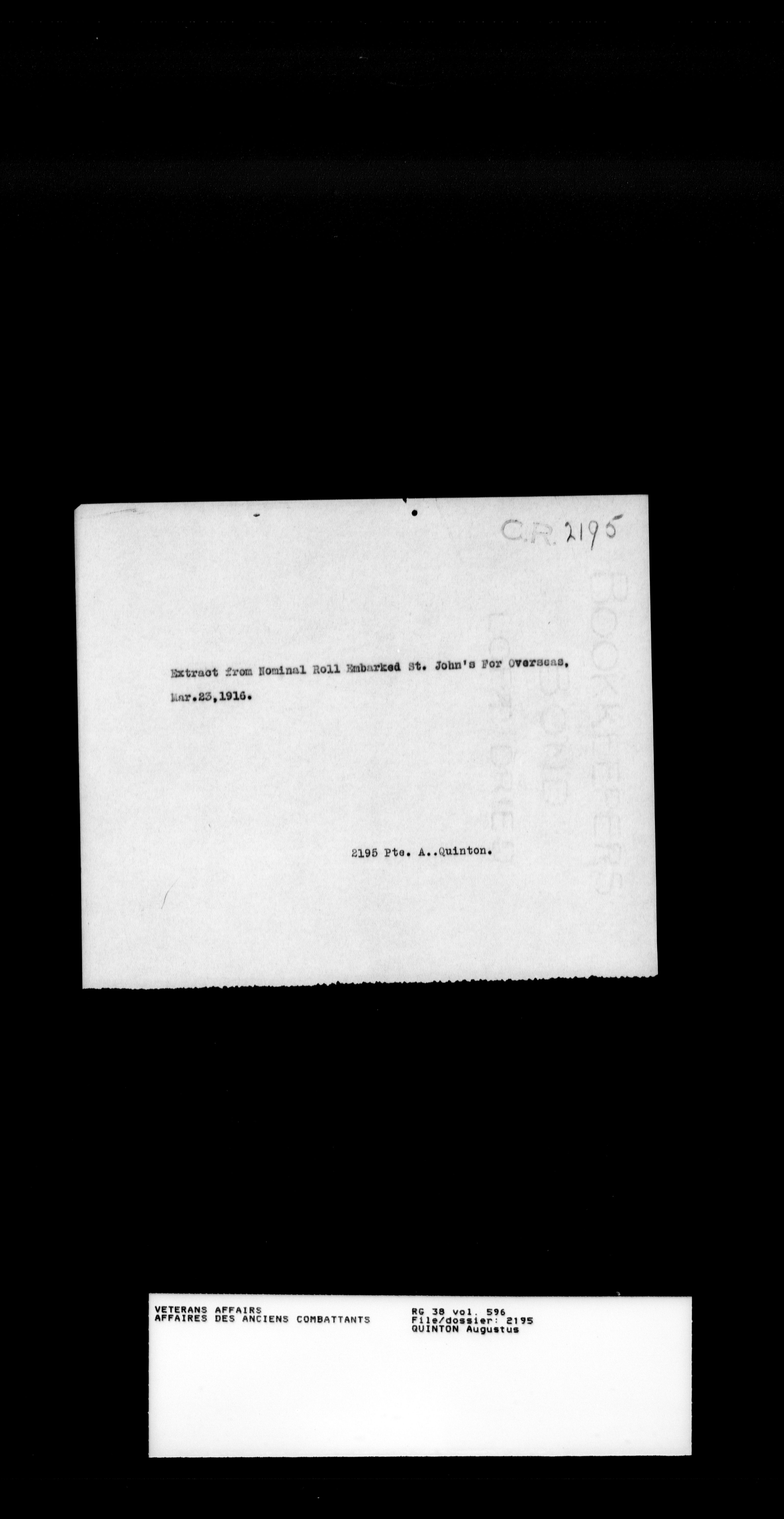 Military service files for members of the Royal Newfoundland Regiment and bandsmen and the Newfoundland Forestry Corps (1914-1919) - 18141