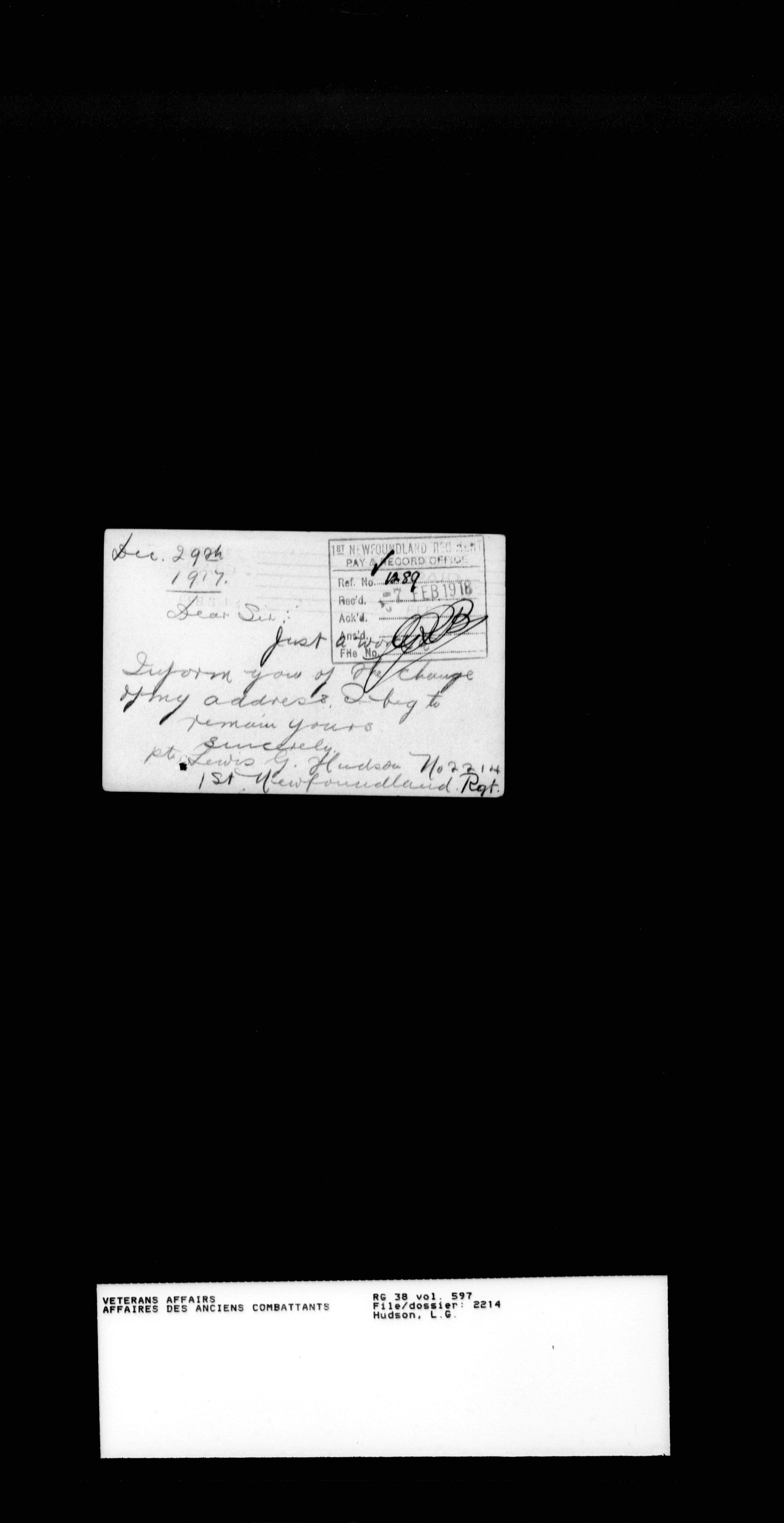 Military service files for members of the Royal Newfoundland Regiment and bandsmen and the Newfoundland Forestry Corps (1914-1919) - 18142