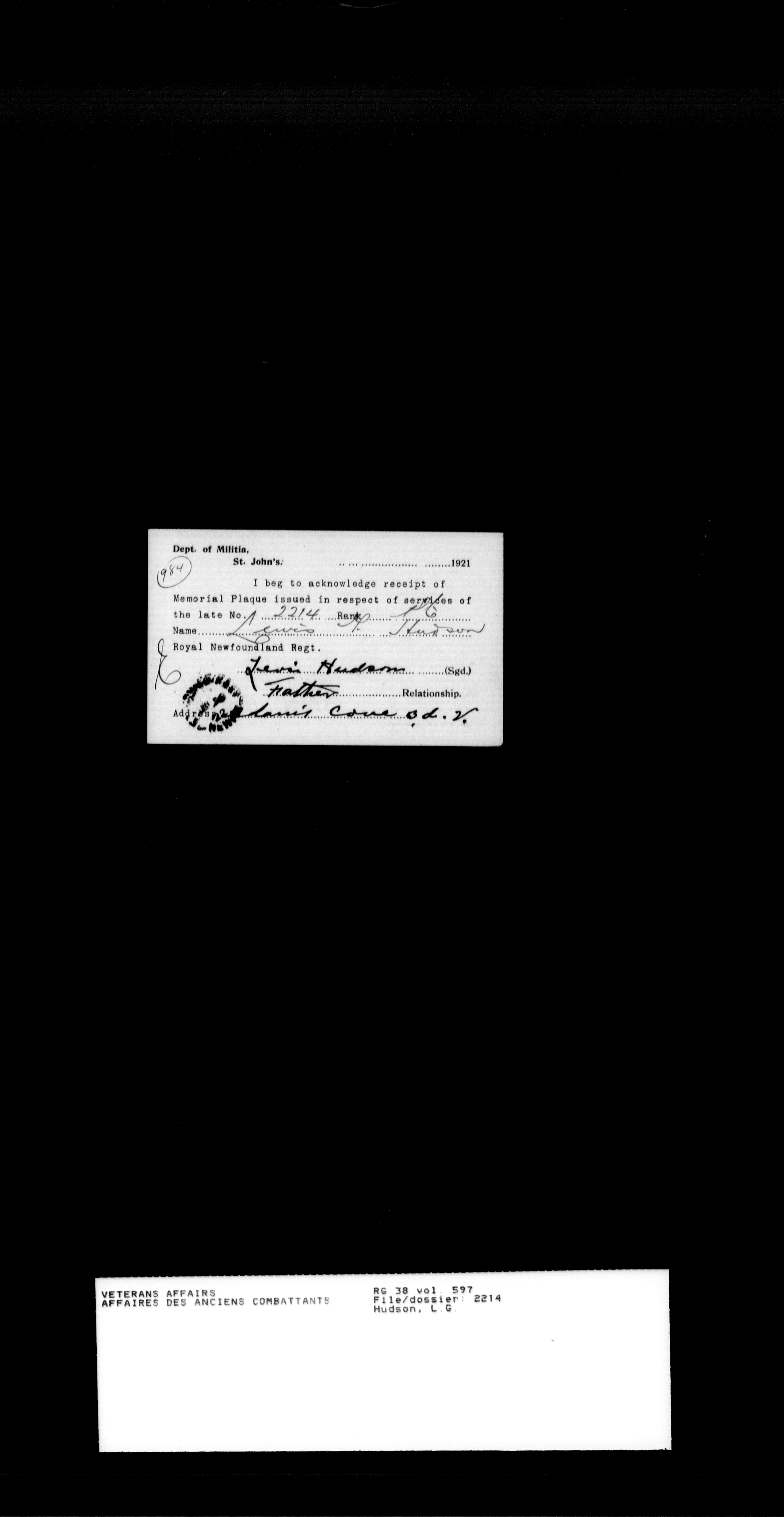 Military service files for members of the Royal Newfoundland Regiment and bandsmen and the Newfoundland Forestry Corps (1914-1919) - 18142