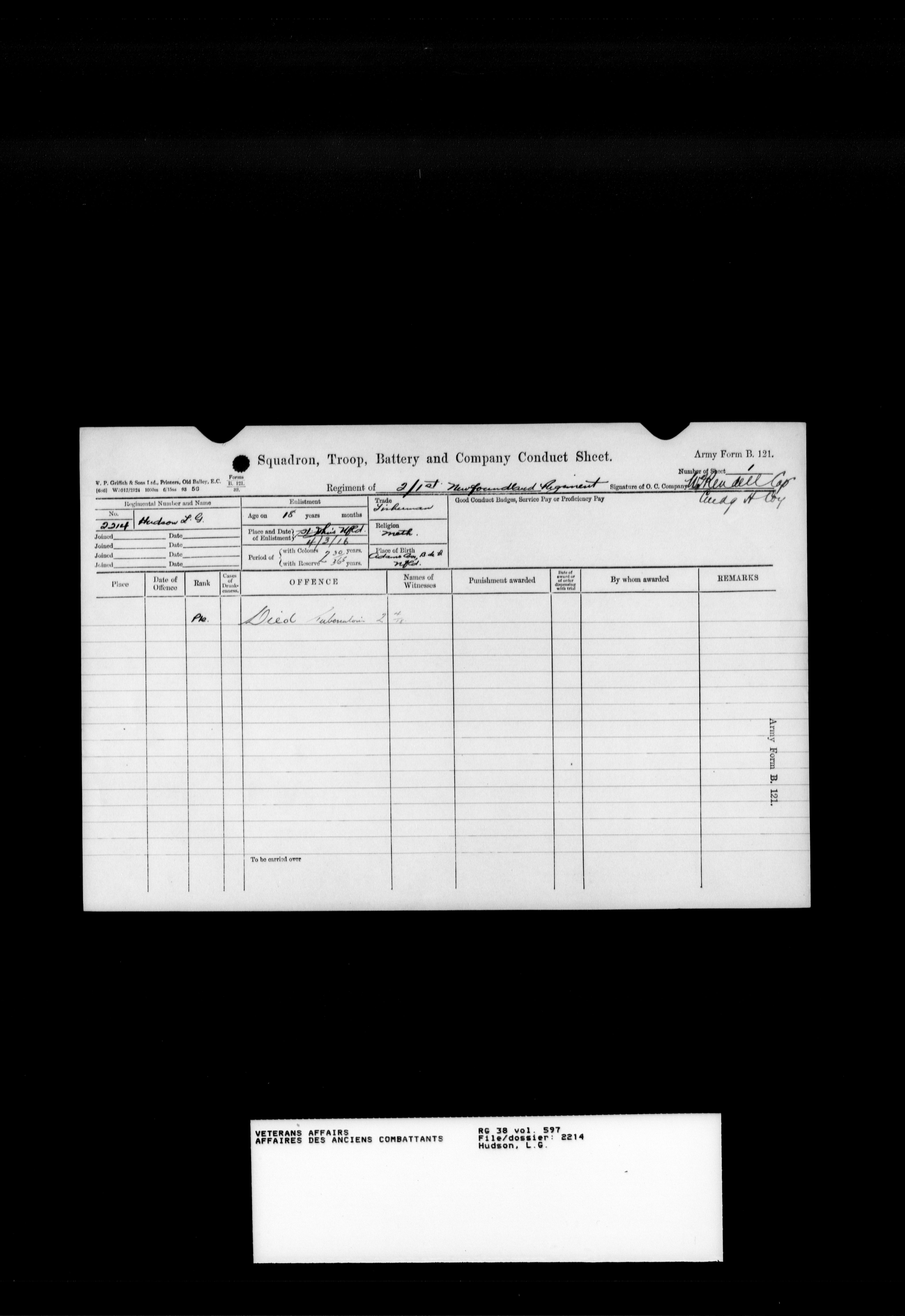 Military service files for members of the Royal Newfoundland Regiment and bandsmen and the Newfoundland Forestry Corps (1914-1919) - 18142