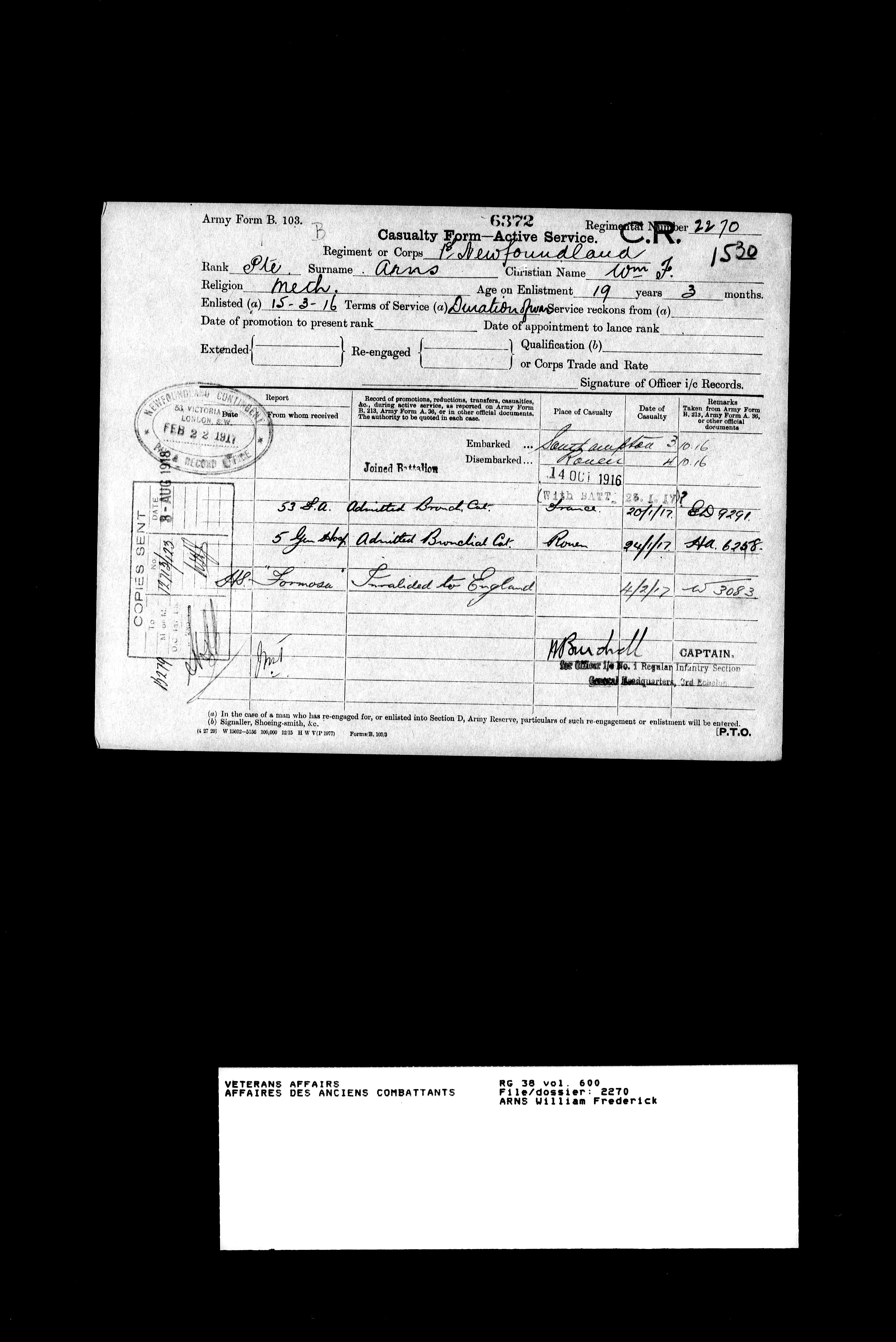 Military service files for members of the Royal Newfoundland Regiment and bandsmen and the Newfoundland Forestry Corps (1914-1919) - 18145