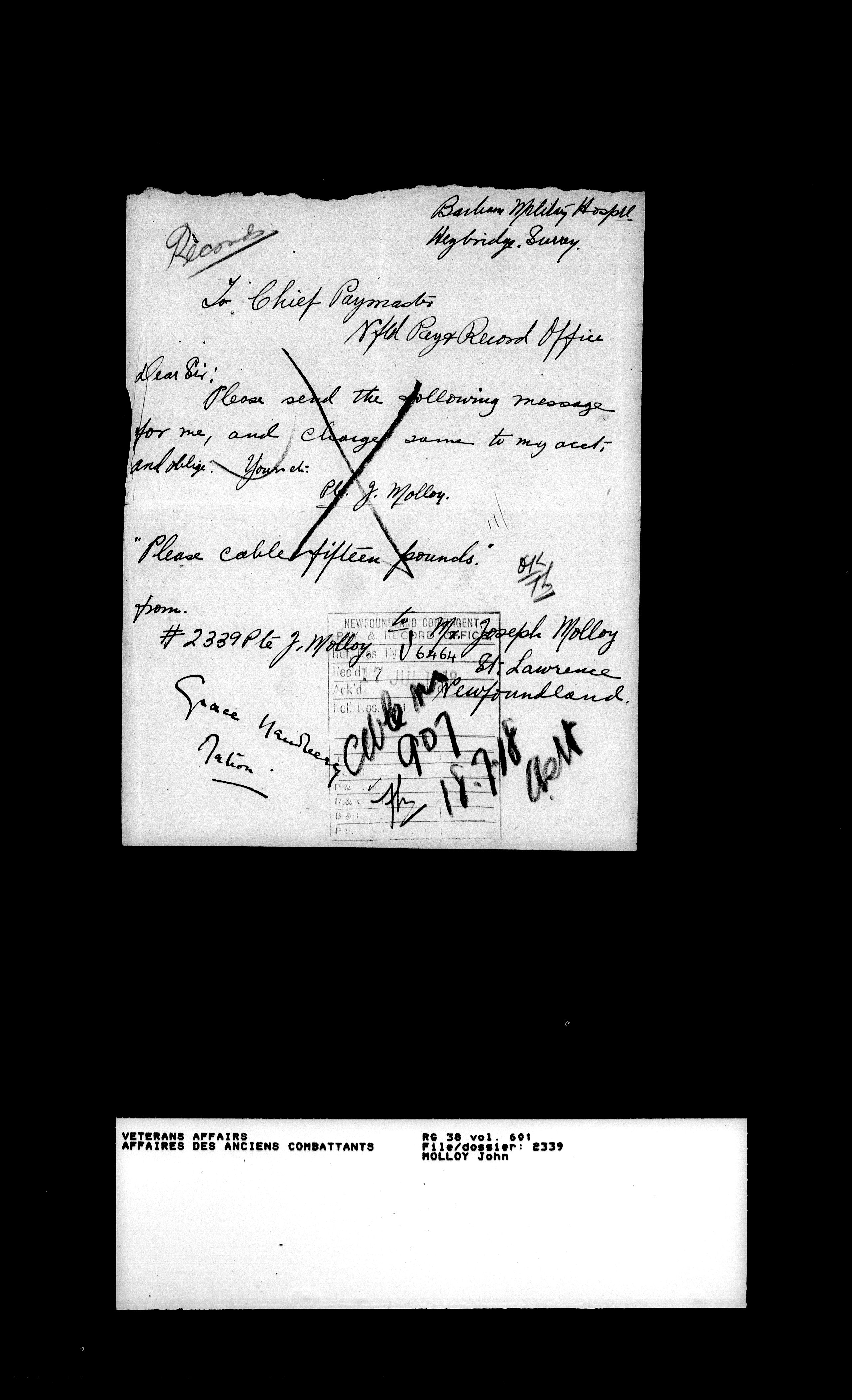 Royal Newfoundland Regiment service files : T-18146