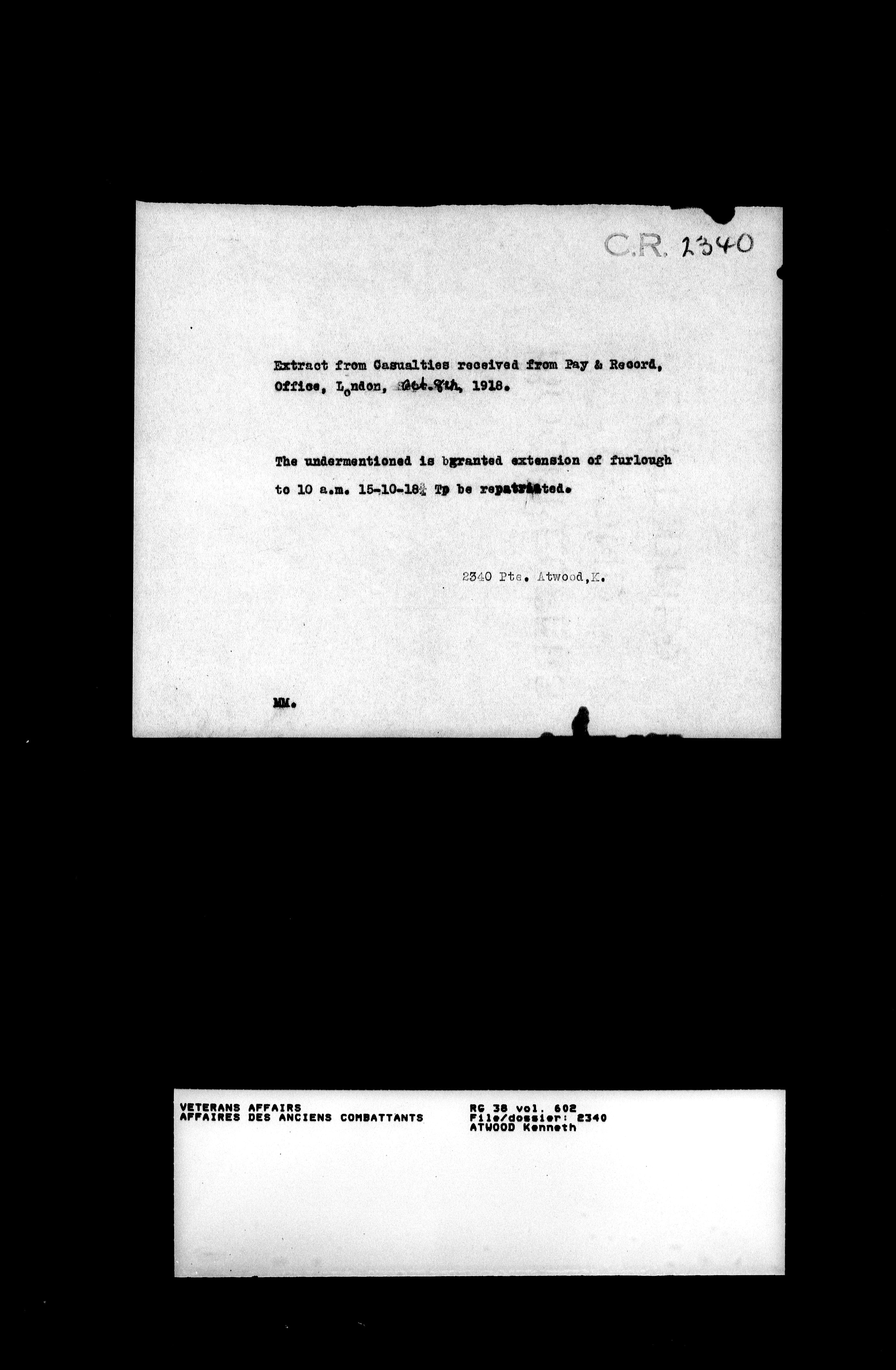 Military service files for members of the Royal Newfoundland Regiment and bandsmen and the Newfoundland Forestry Corps (1914-1919) - 18147