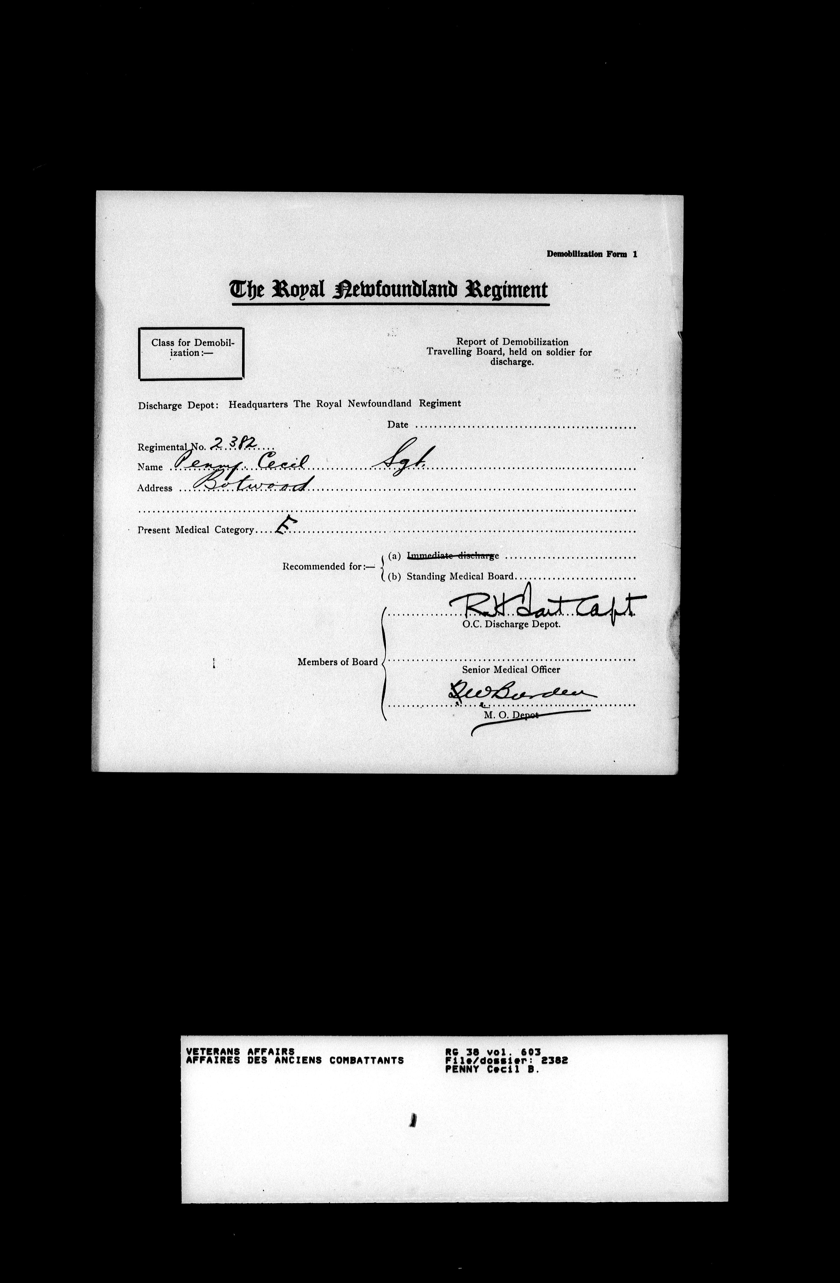 Military service files for members of the Royal Newfoundland Regiment and bandsmen and the Newfoundland Forestry Corps (1914-1919) - 18149