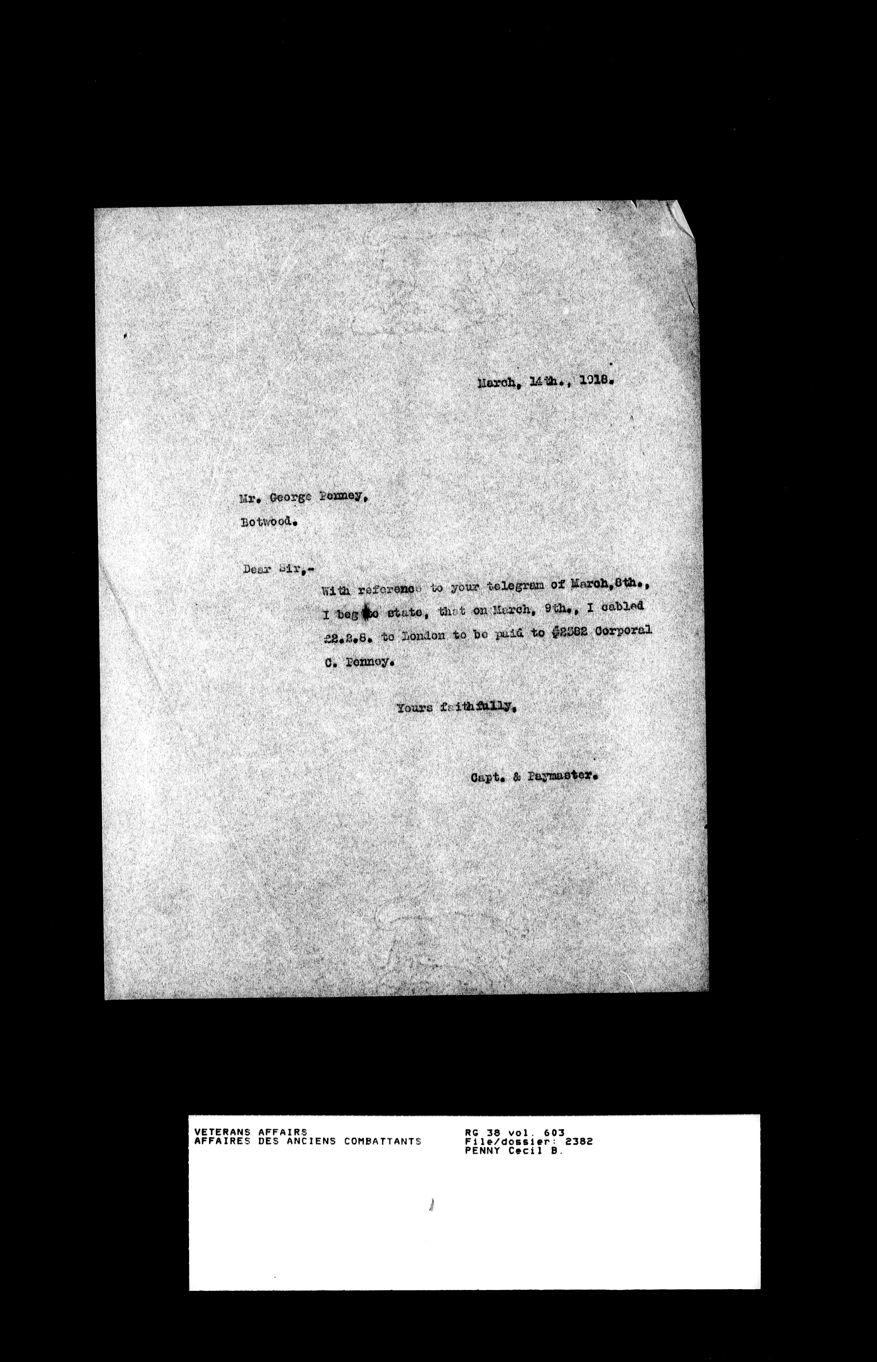 Military service files for members of the Royal Newfoundland Regiment and bandsmen and the Newfoundland Forestry Corps (1914-1919) - 18149