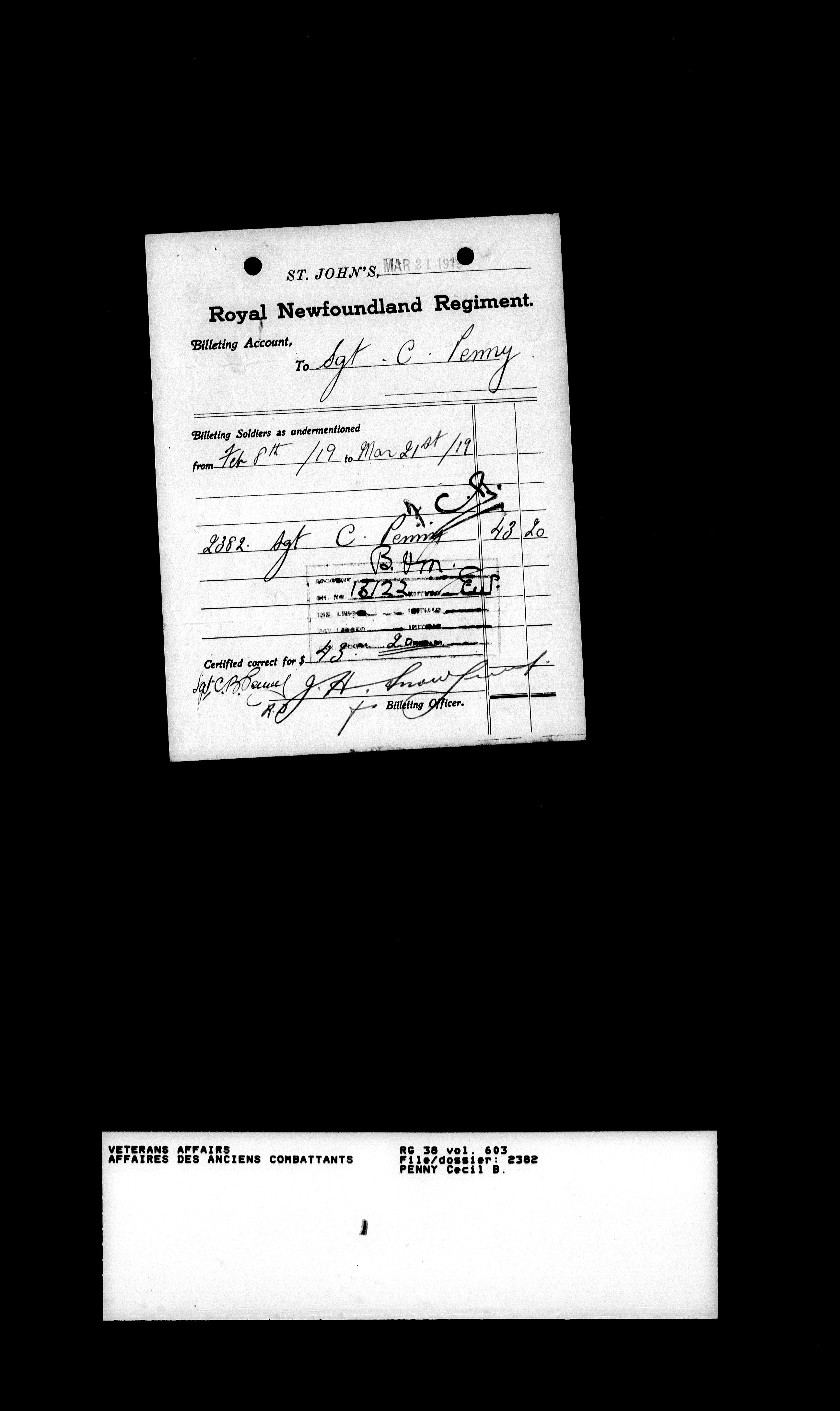 Military service files for members of the Royal Newfoundland Regiment and bandsmen and the Newfoundland Forestry Corps (1914-1919) - 18149