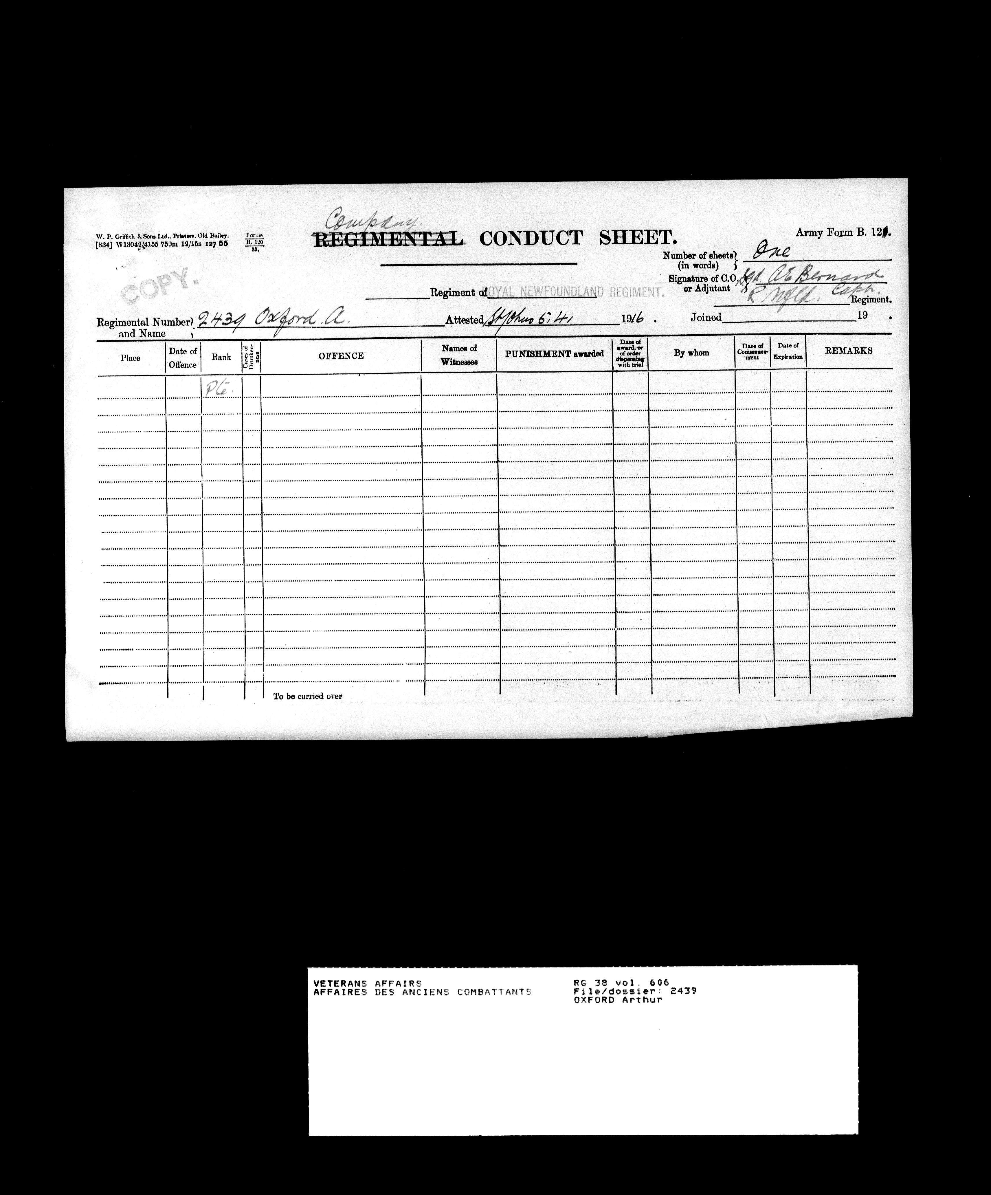 Military service files for members of the Royal Newfoundland Regiment and bandsmen and the Newfoundland Forestry Corps (1914-1919) - 18151