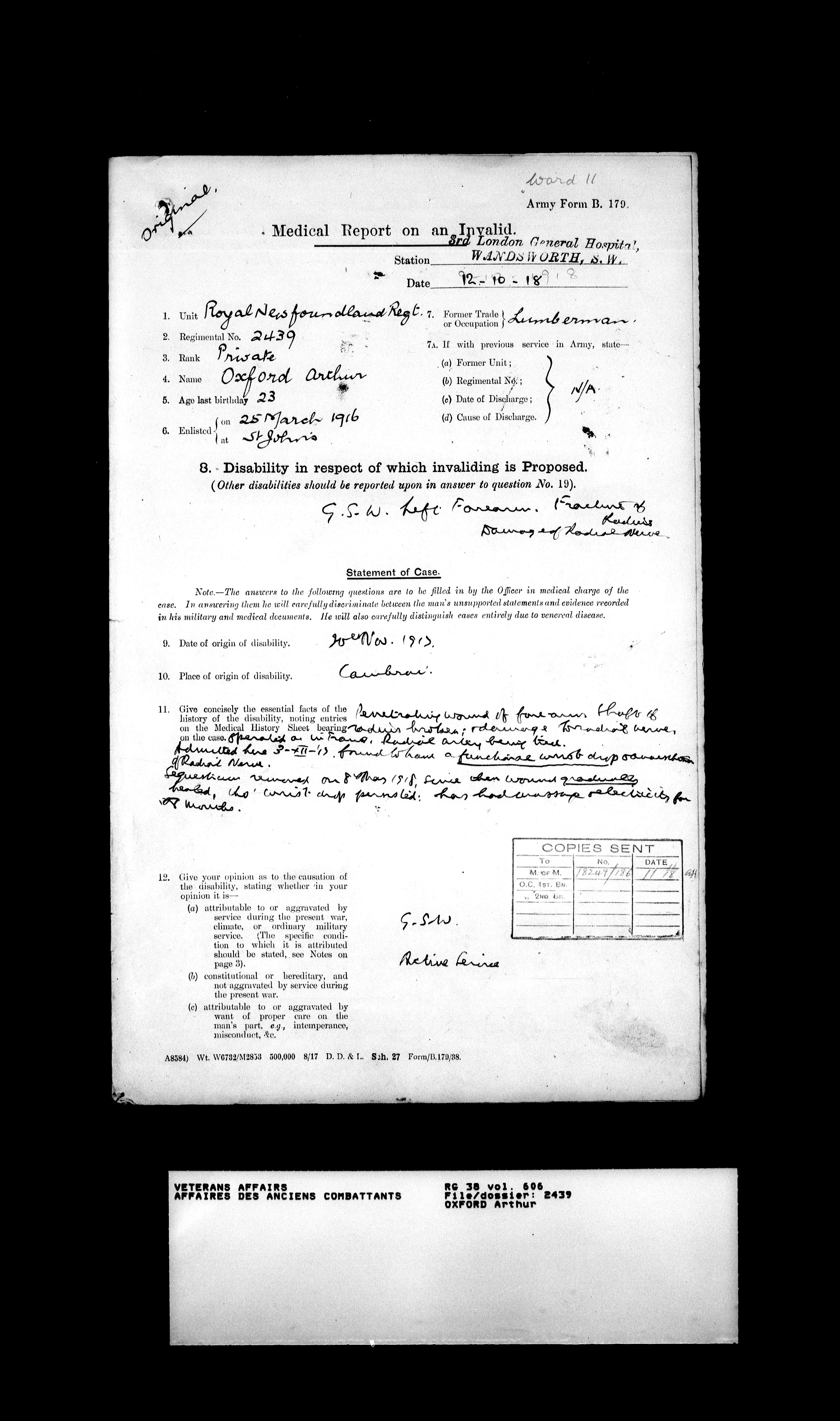 Military service files for members of the Royal Newfoundland Regiment and bandsmen and the Newfoundland Forestry Corps (1914-1919) - 18151
