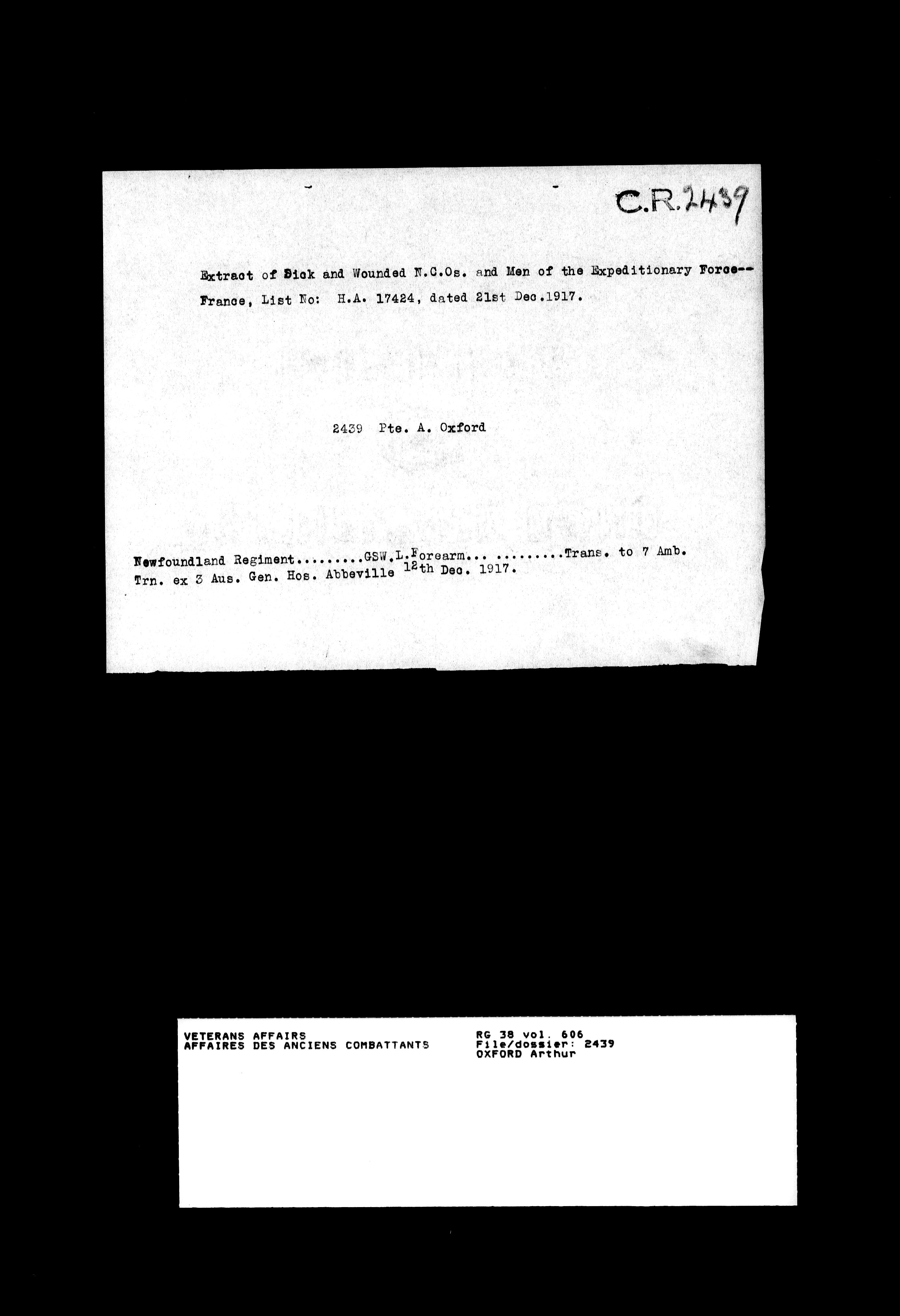 Military service files for members of the Royal Newfoundland Regiment and bandsmen and the Newfoundland Forestry Corps (1914-1919) - 18152