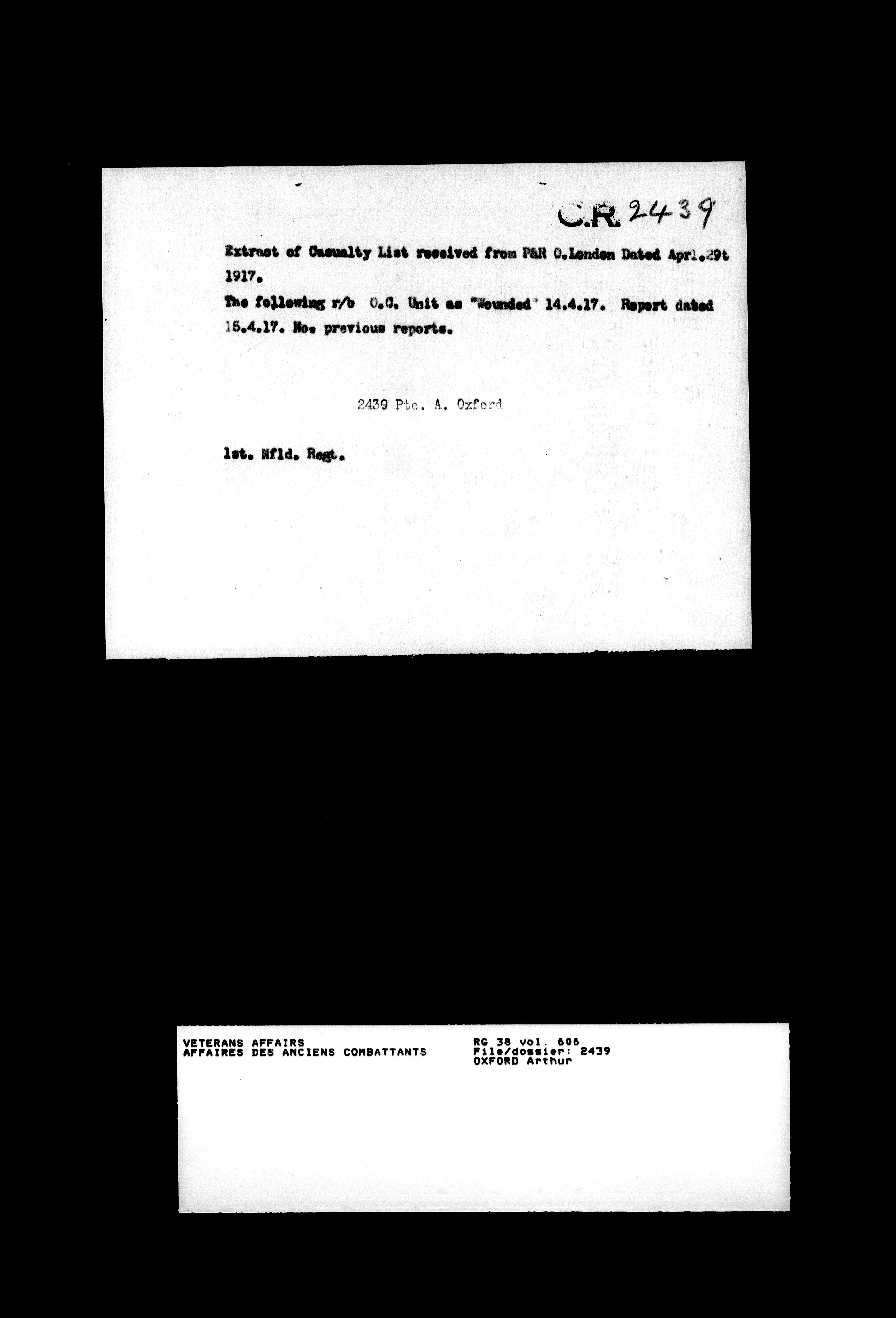 Military service files for members of the Royal Newfoundland Regiment and bandsmen and the Newfoundland Forestry Corps (1914-1919) - 18152