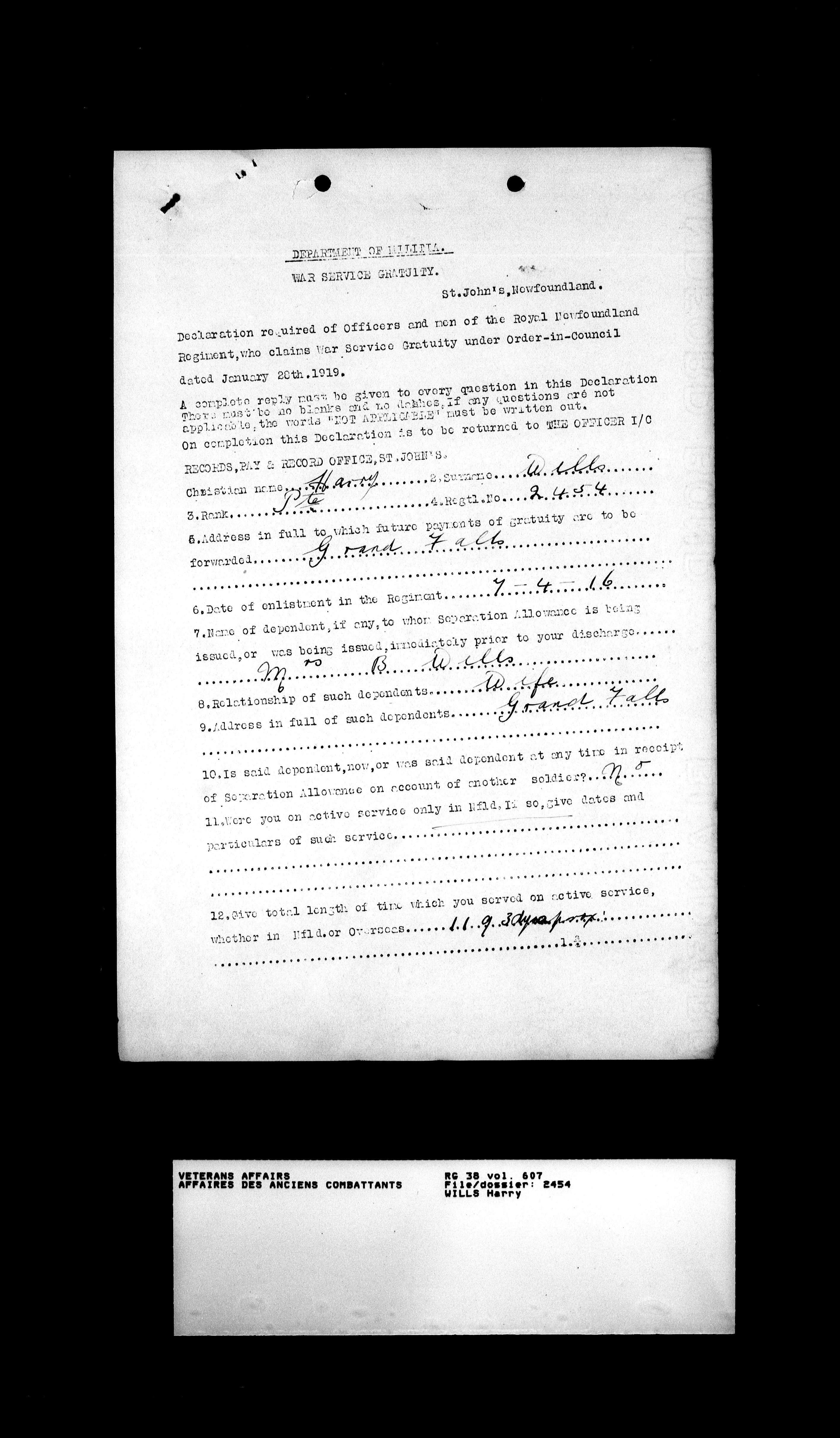 Military service files for members of the Royal Newfoundland Regiment and bandsmen and the Newfoundland Forestry Corps (1914-1919) - 18153
