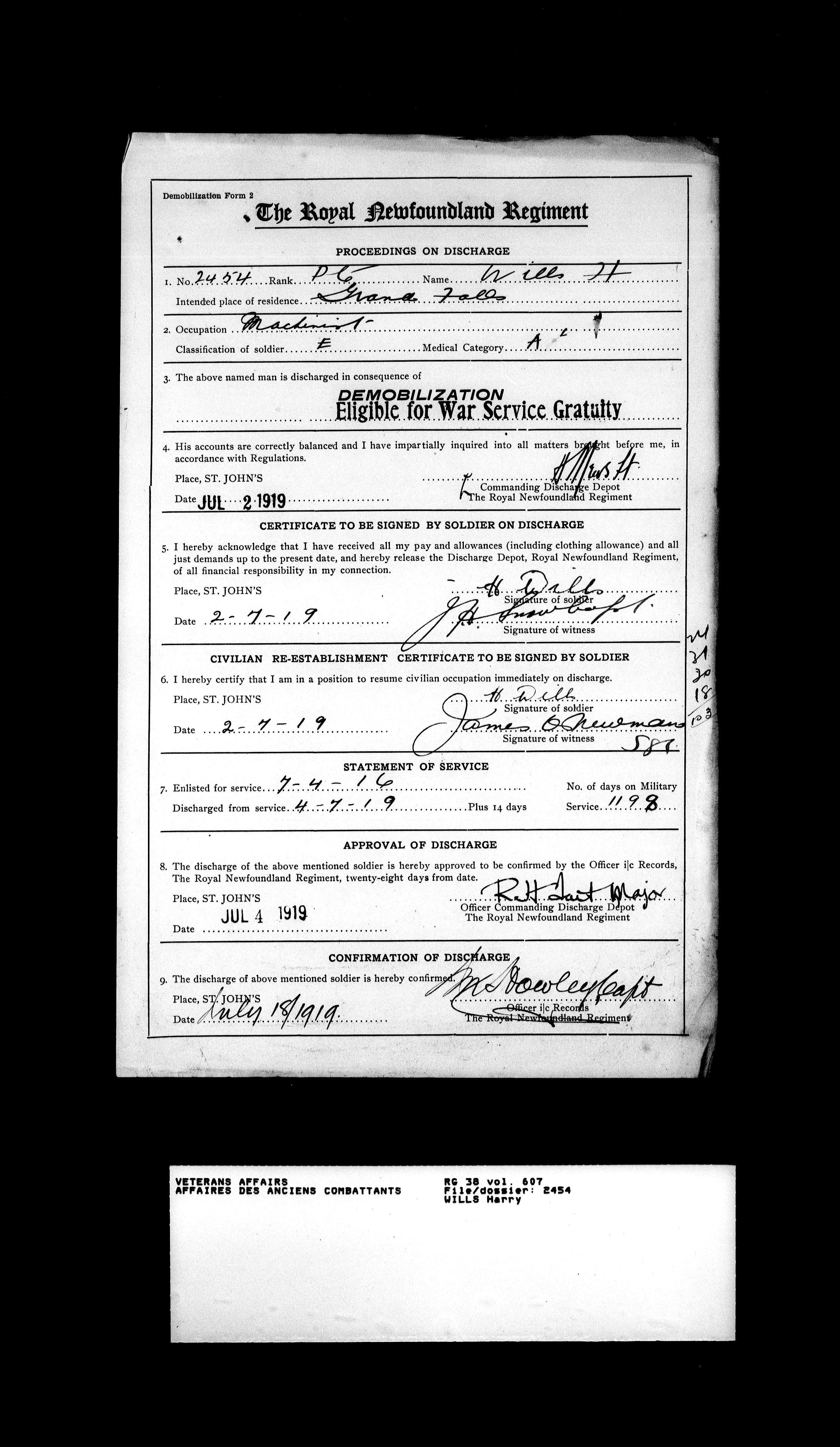 Military service files for members of the Royal Newfoundland Regiment and bandsmen and the Newfoundland Forestry Corps (1914-1919) - 18153