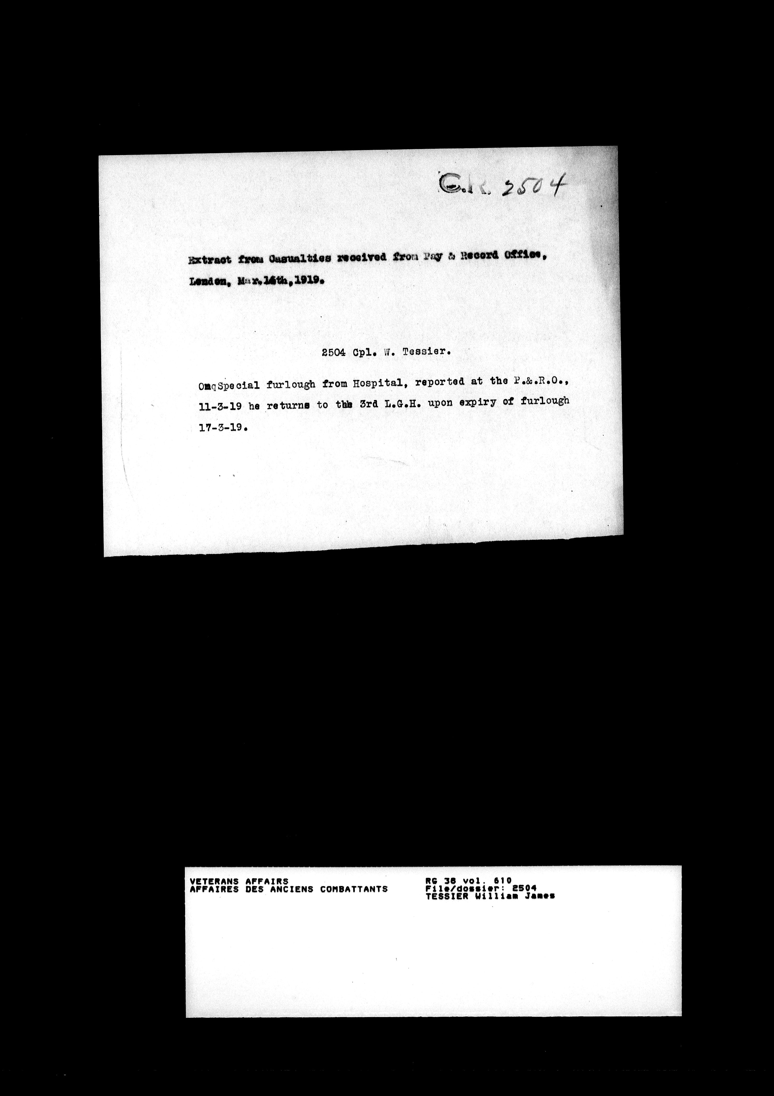 Military service files for members of the Royal Newfoundland Regiment and bandsmen and the Newfoundland Forestry Corps (1914-1919) - 18155