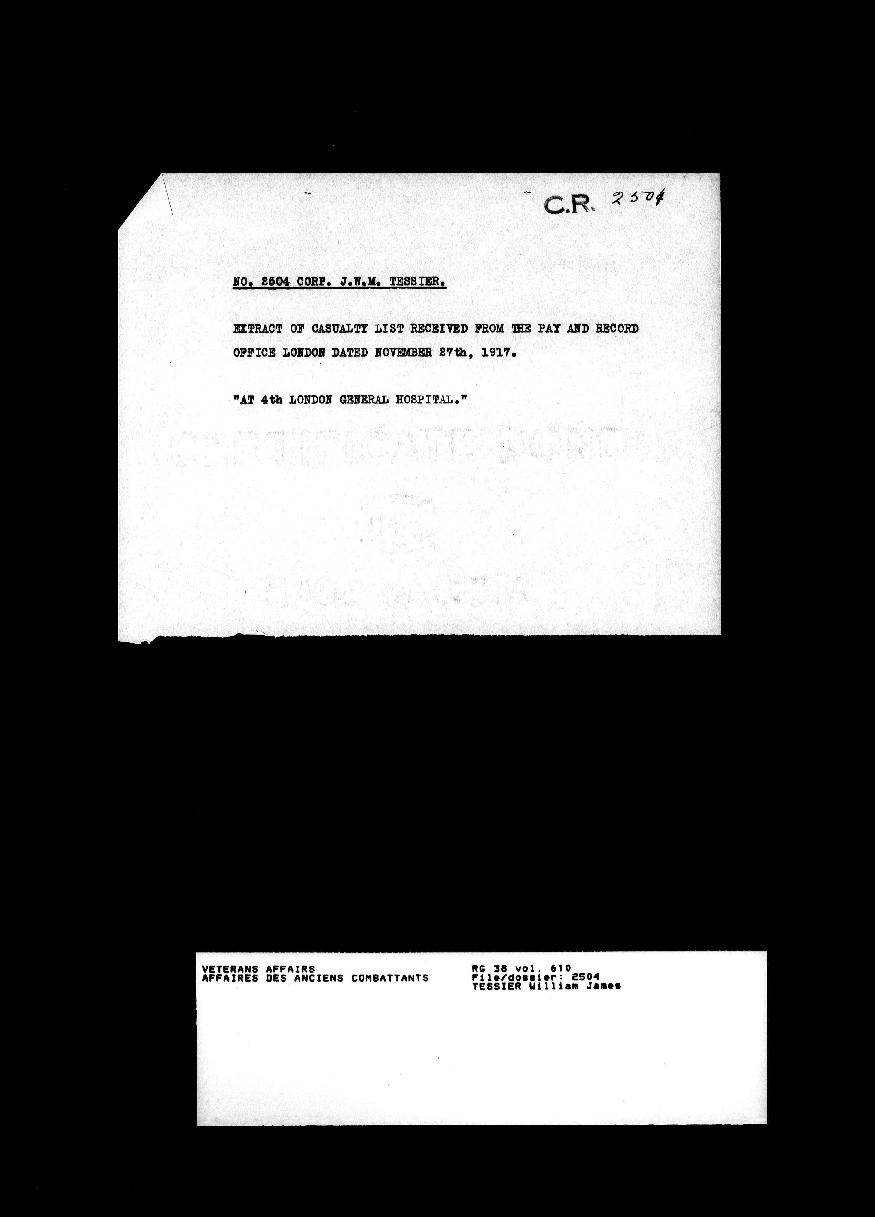 Military service files for members of the Royal Newfoundland Regiment and bandsmen and the Newfoundland Forestry Corps (1914-1919) - 18155