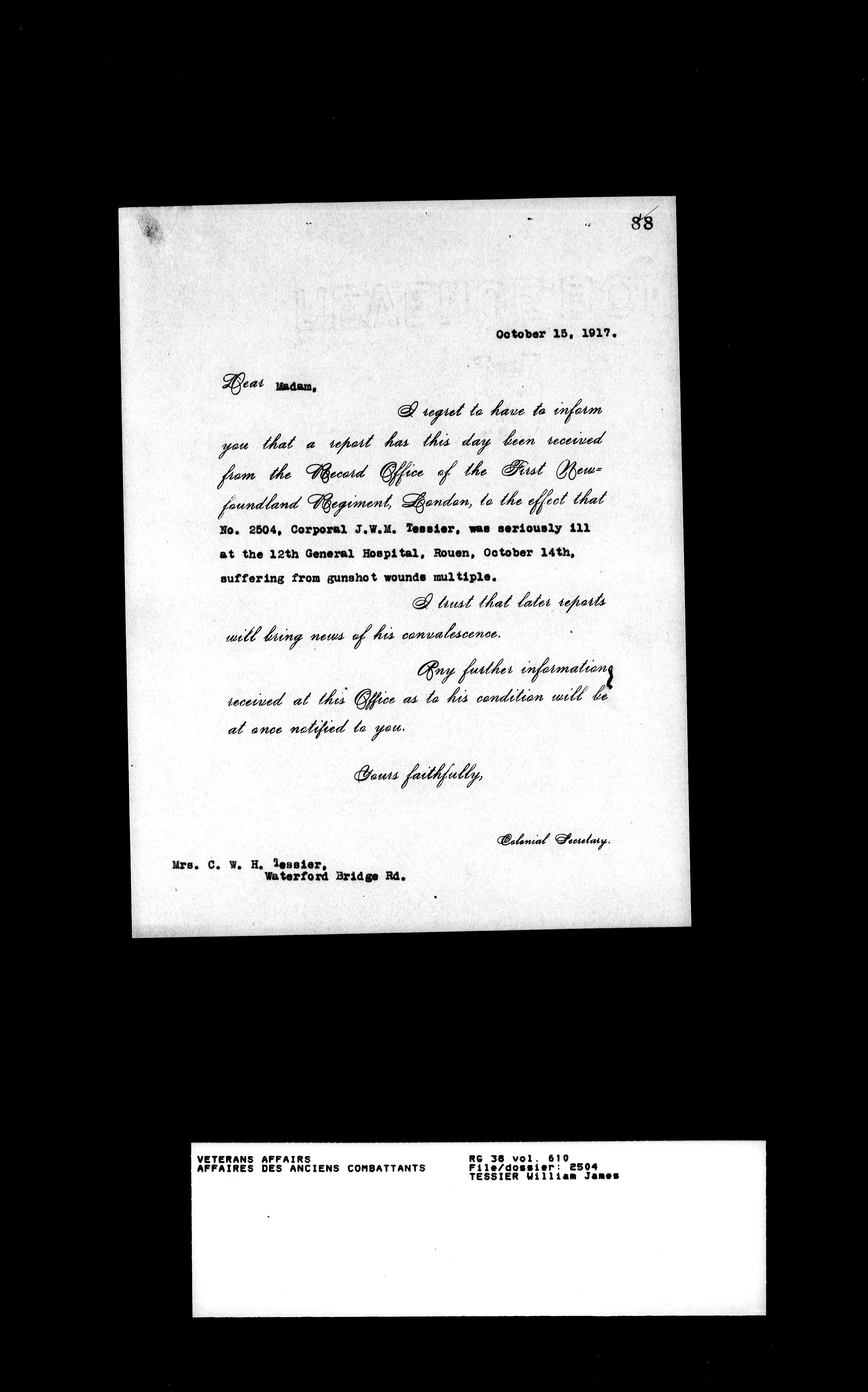 Military service files for members of the Royal Newfoundland Regiment and bandsmen and the Newfoundland Forestry Corps (1914-1919) - 18155