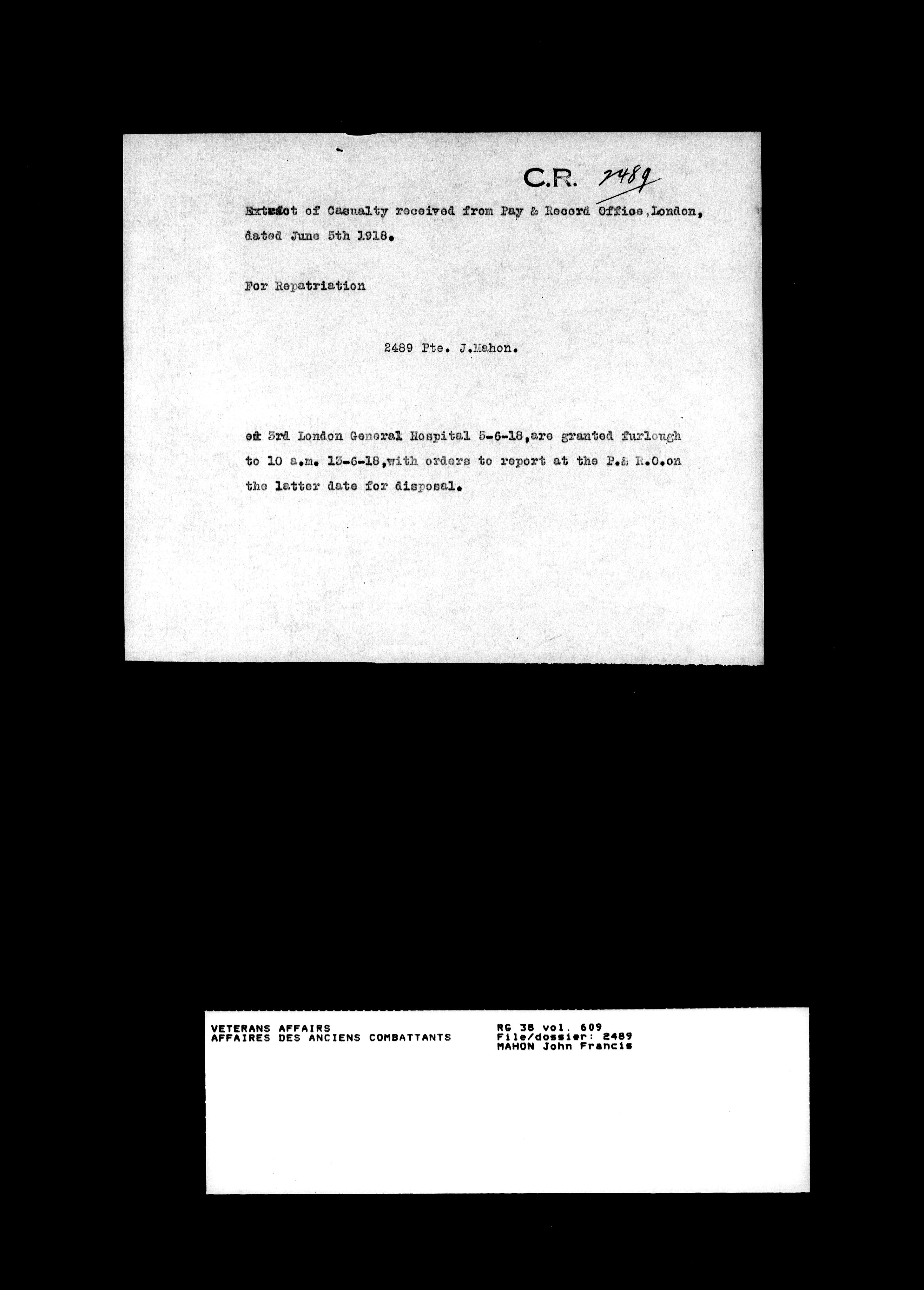 Military service files for members of the Royal Newfoundland Regiment and bandsmen and the Newfoundland Forestry Corps (1914-1919) - 18155