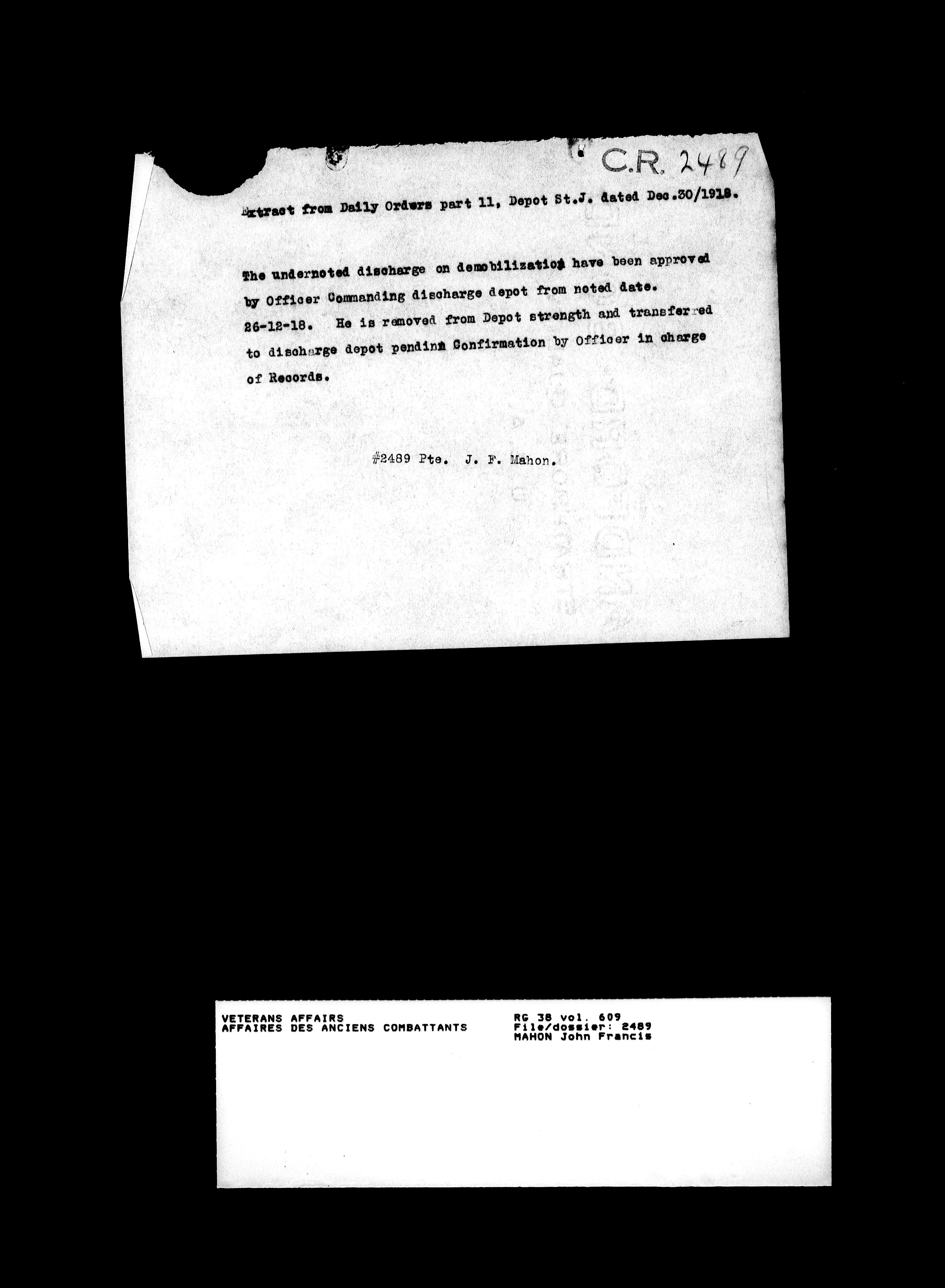 Military service files for members of the Royal Newfoundland Regiment and bandsmen and the Newfoundland Forestry Corps (1914-1919) - 18155