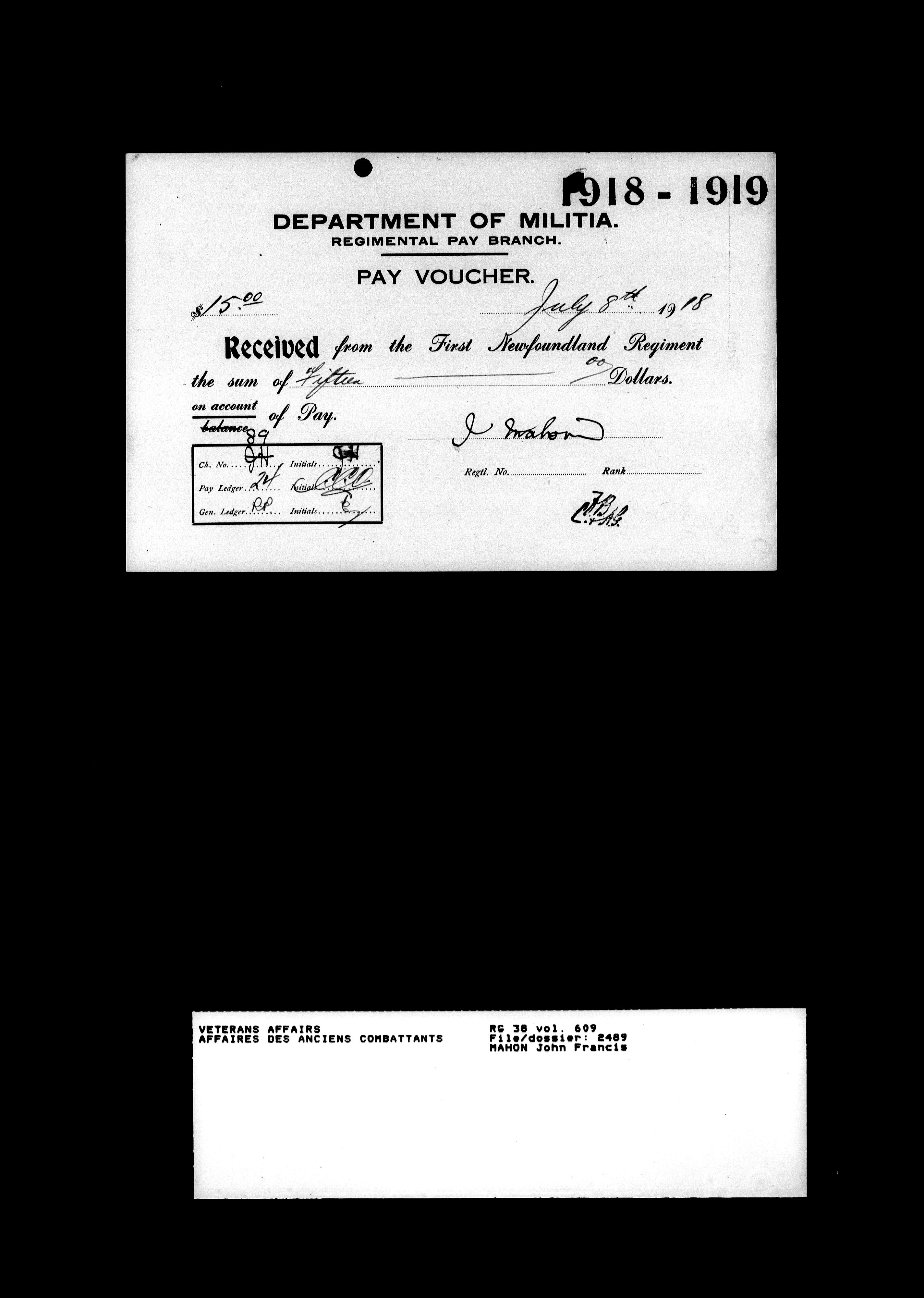Military service files for members of the Royal Newfoundland Regiment and bandsmen and the Newfoundland Forestry Corps (1914-1919) - 18155
