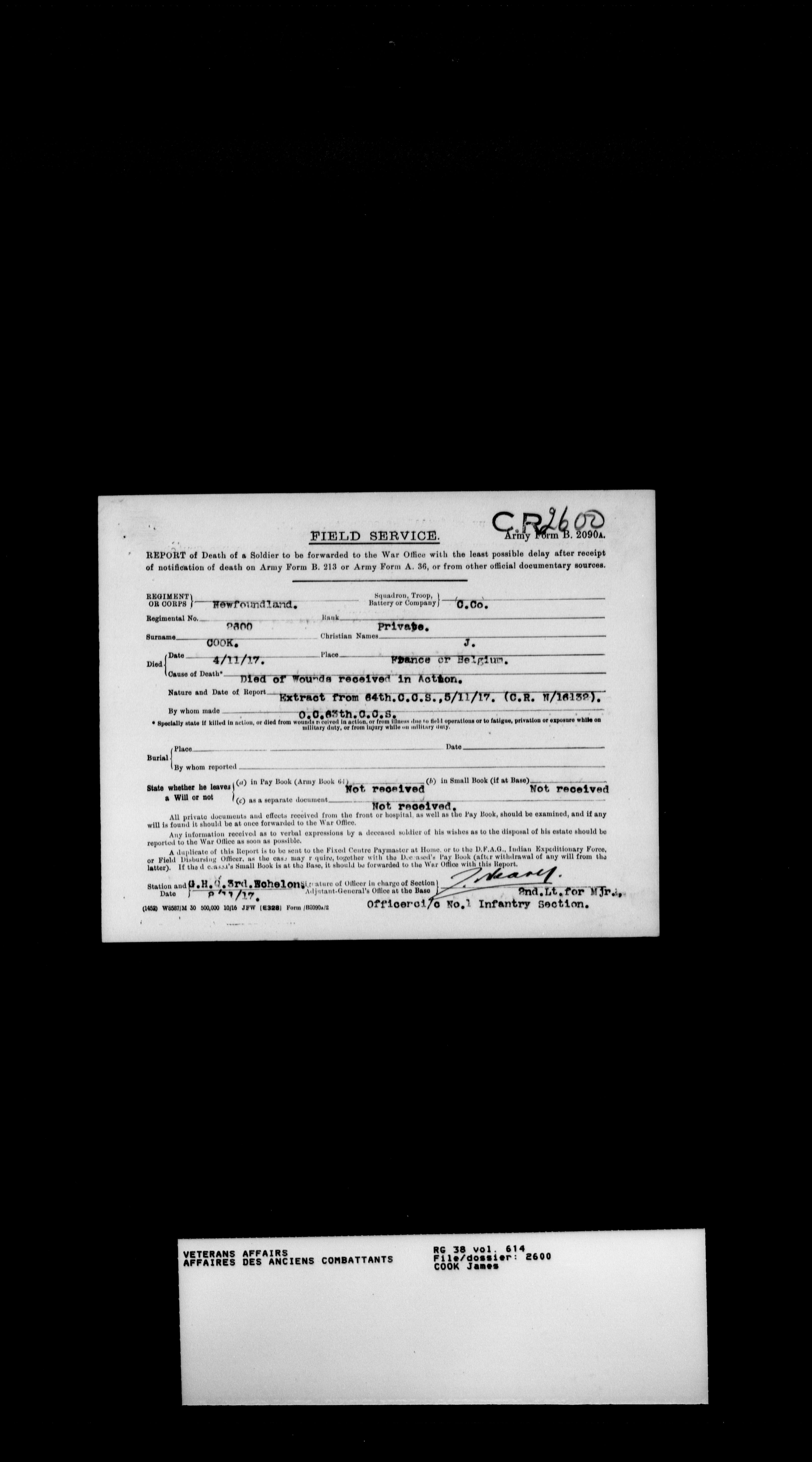 Military service files for members of the Royal Newfoundland Regiment and bandsmen and the Newfoundland Forestry Corps (1914-1919) - 18160