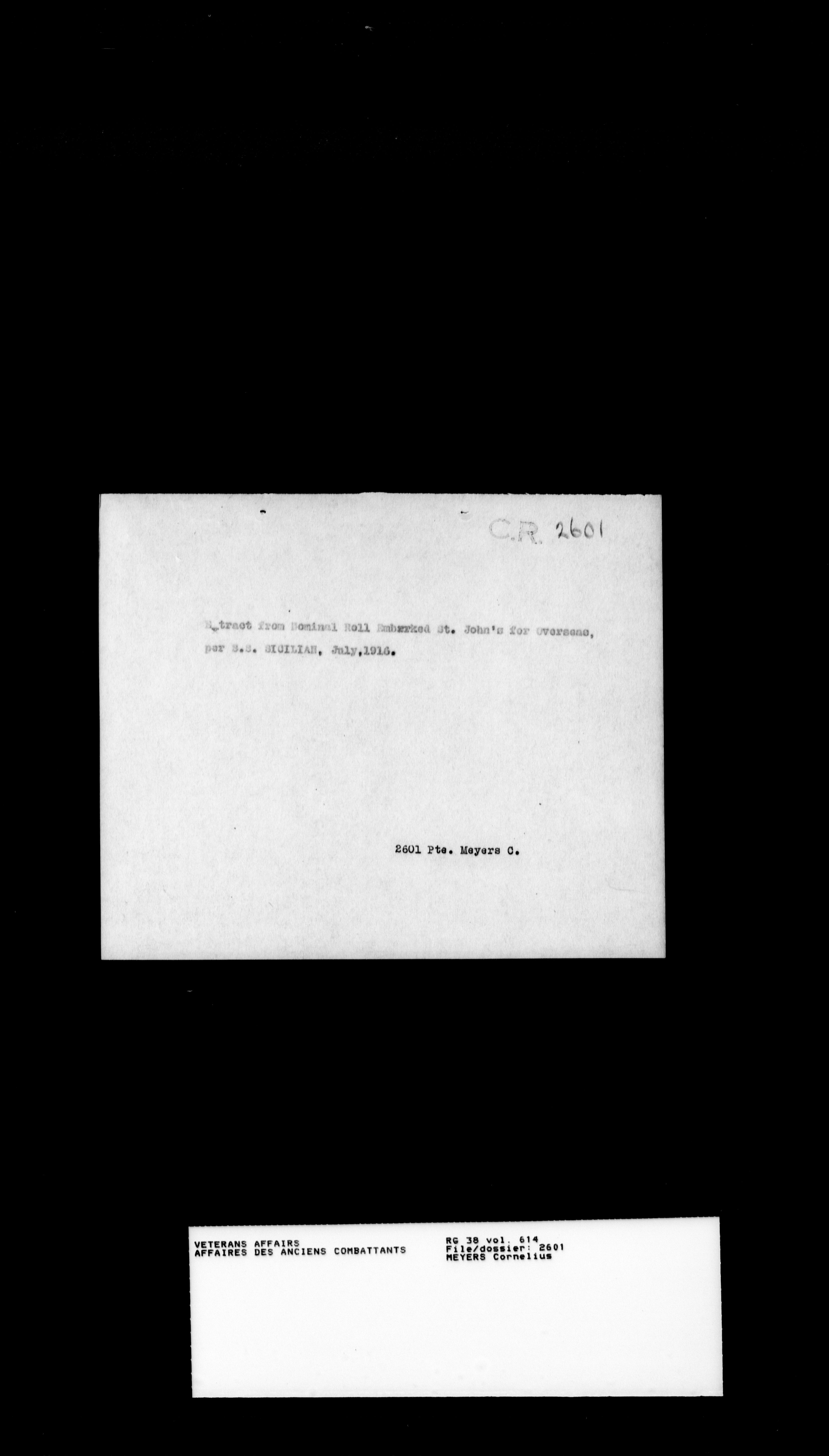 Military service files for members of the Royal Newfoundland Regiment and bandsmen and the Newfoundland Forestry Corps (1914-1919) - 18160