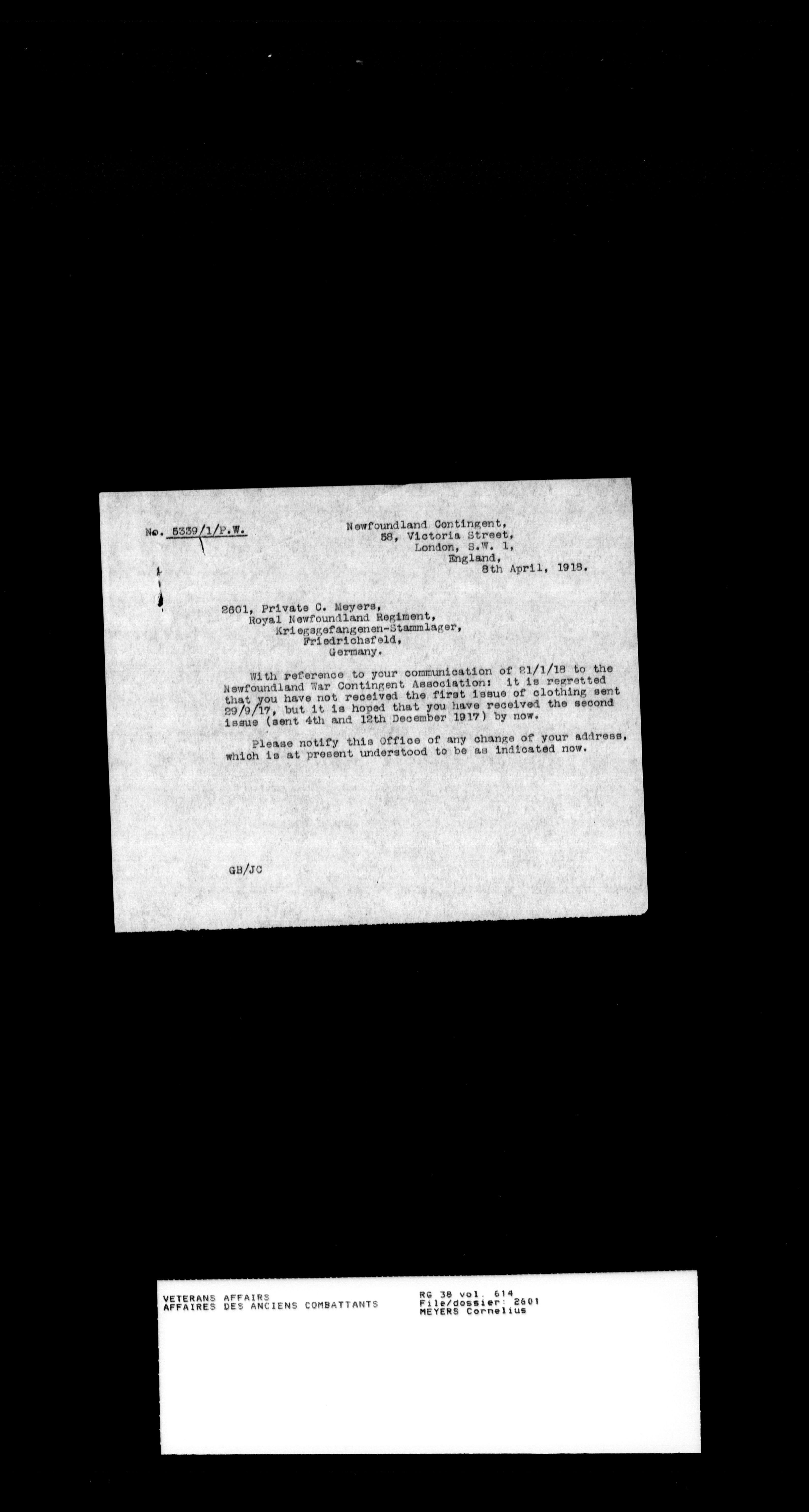 Military service files for members of the Royal Newfoundland Regiment and bandsmen and the Newfoundland Forestry Corps (1914-1919) - 18160