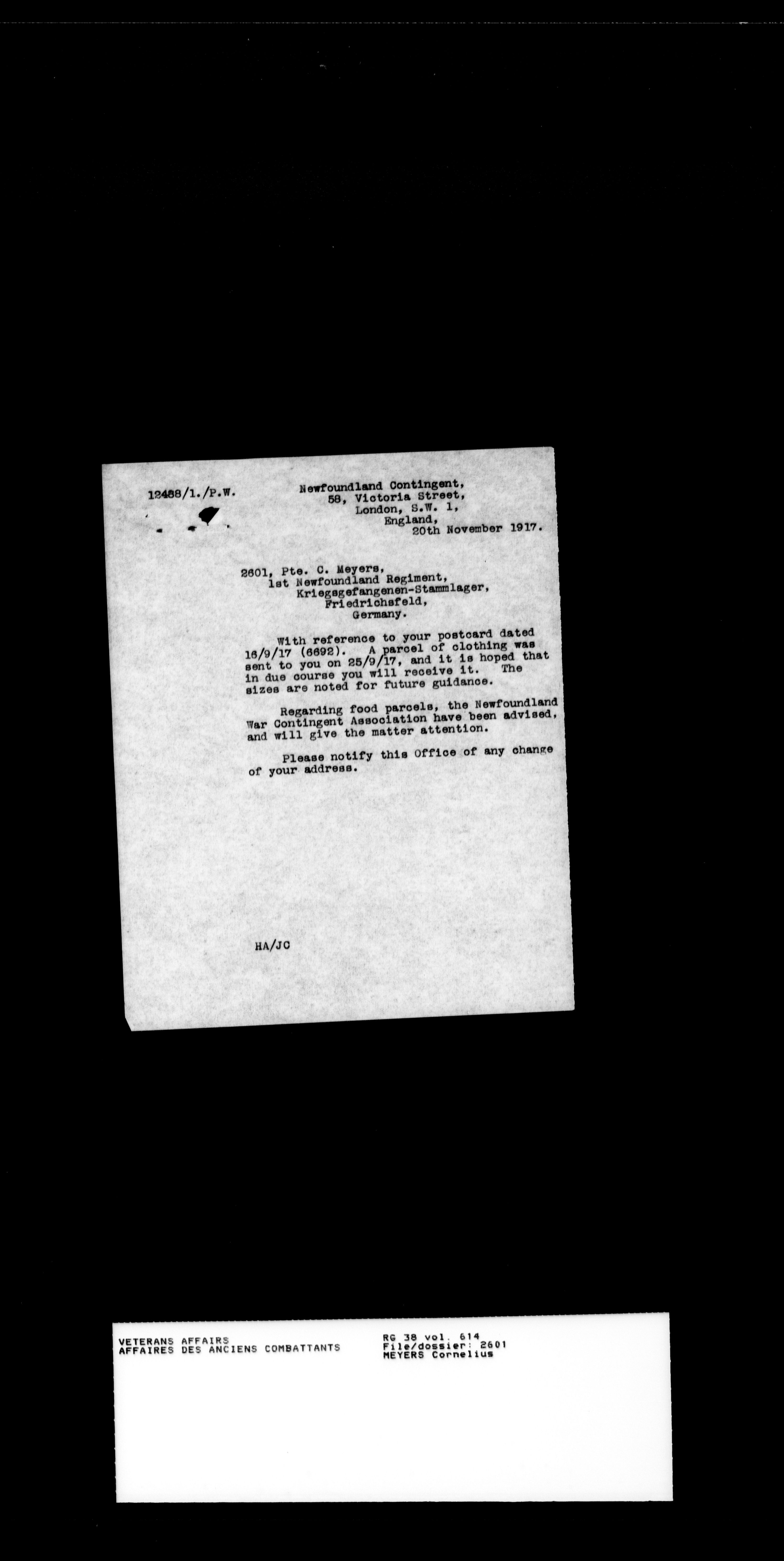 Military service files for members of the Royal Newfoundland Regiment and bandsmen and the Newfoundland Forestry Corps (1914-1919) - 18160