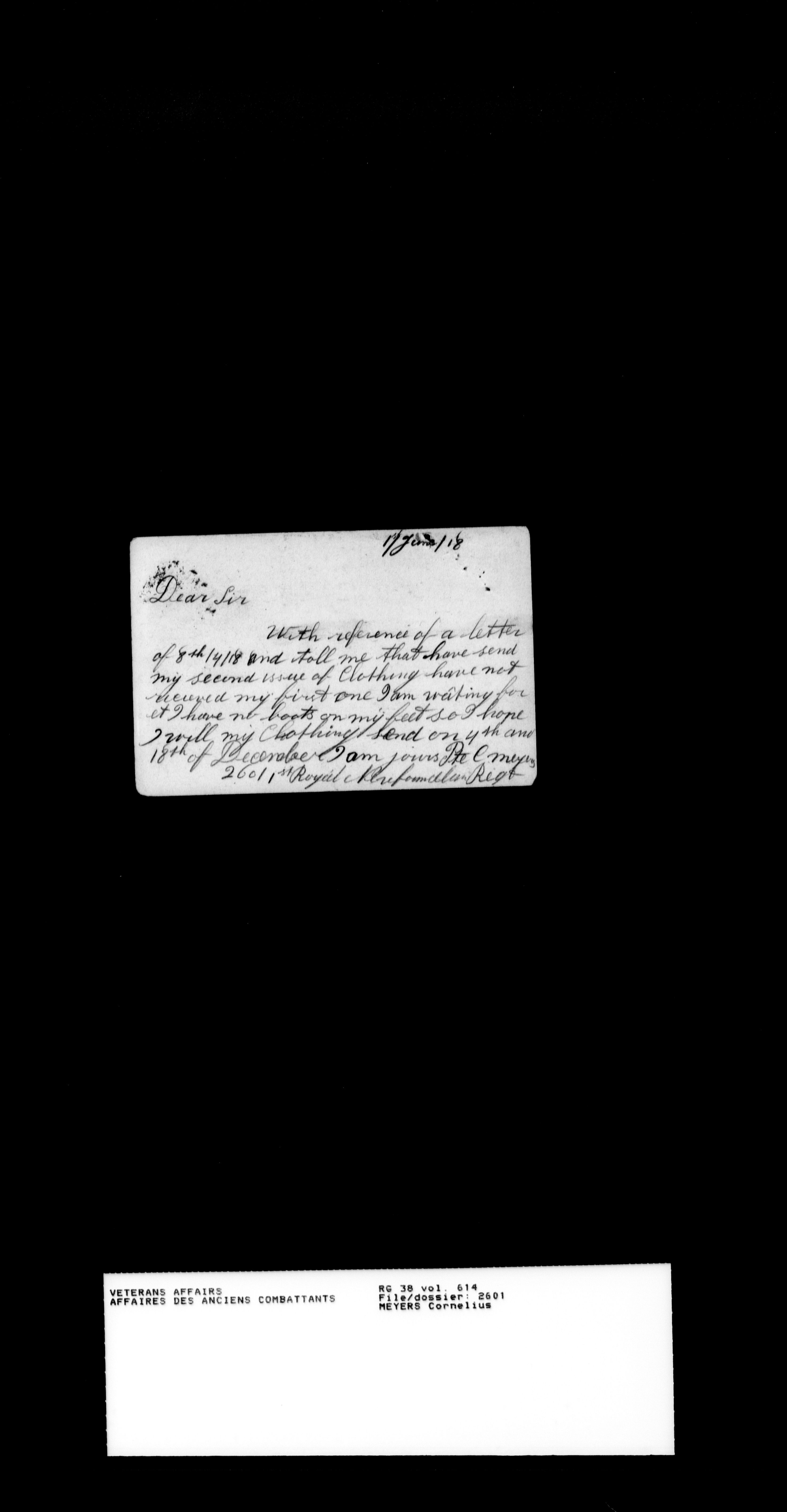 Military service files for members of the Royal Newfoundland Regiment and bandsmen and the Newfoundland Forestry Corps (1914-1919) - 18160