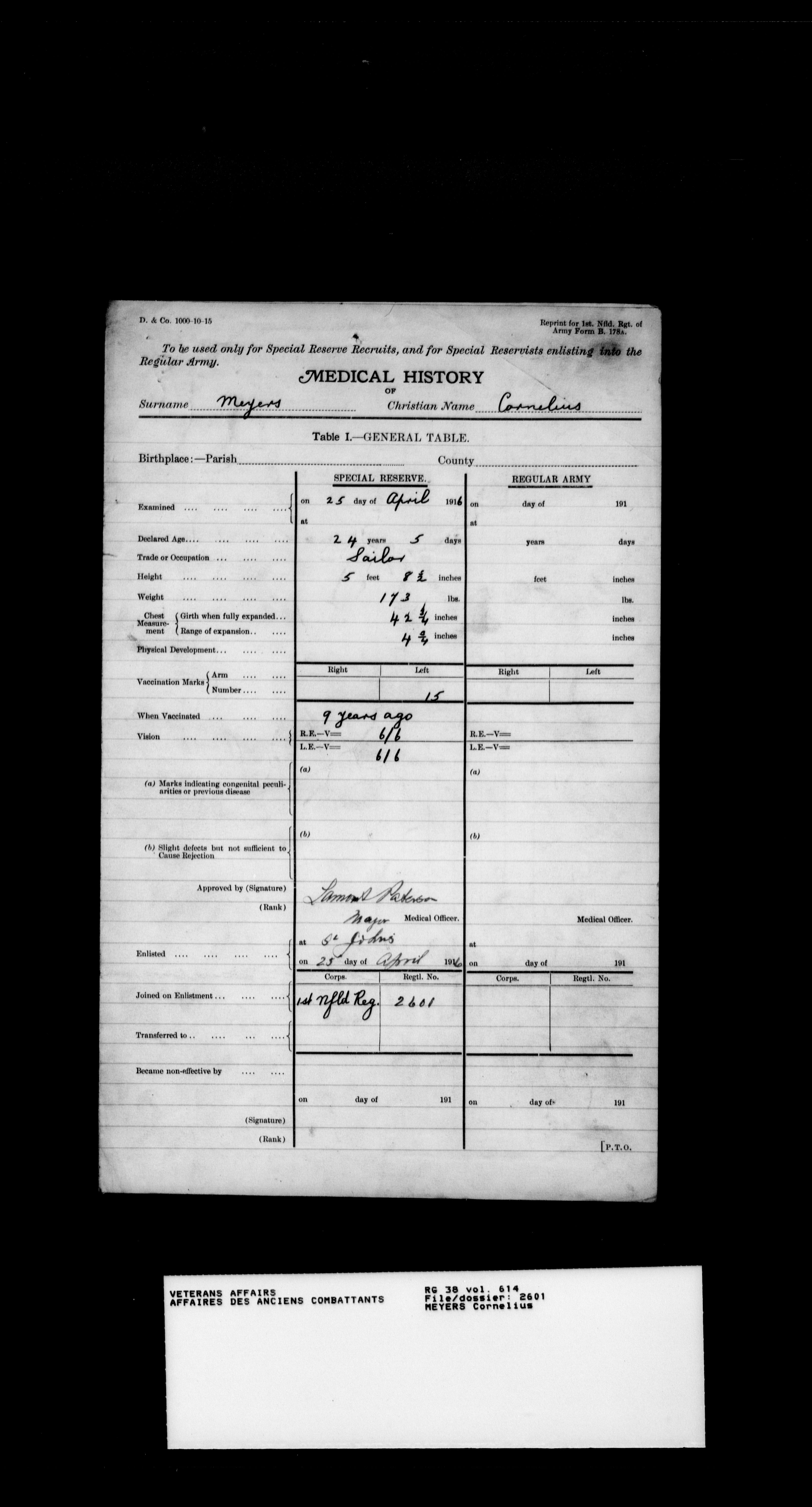Military service files for members of the Royal Newfoundland Regiment and bandsmen and the Newfoundland Forestry Corps (1914-1919) - 18160