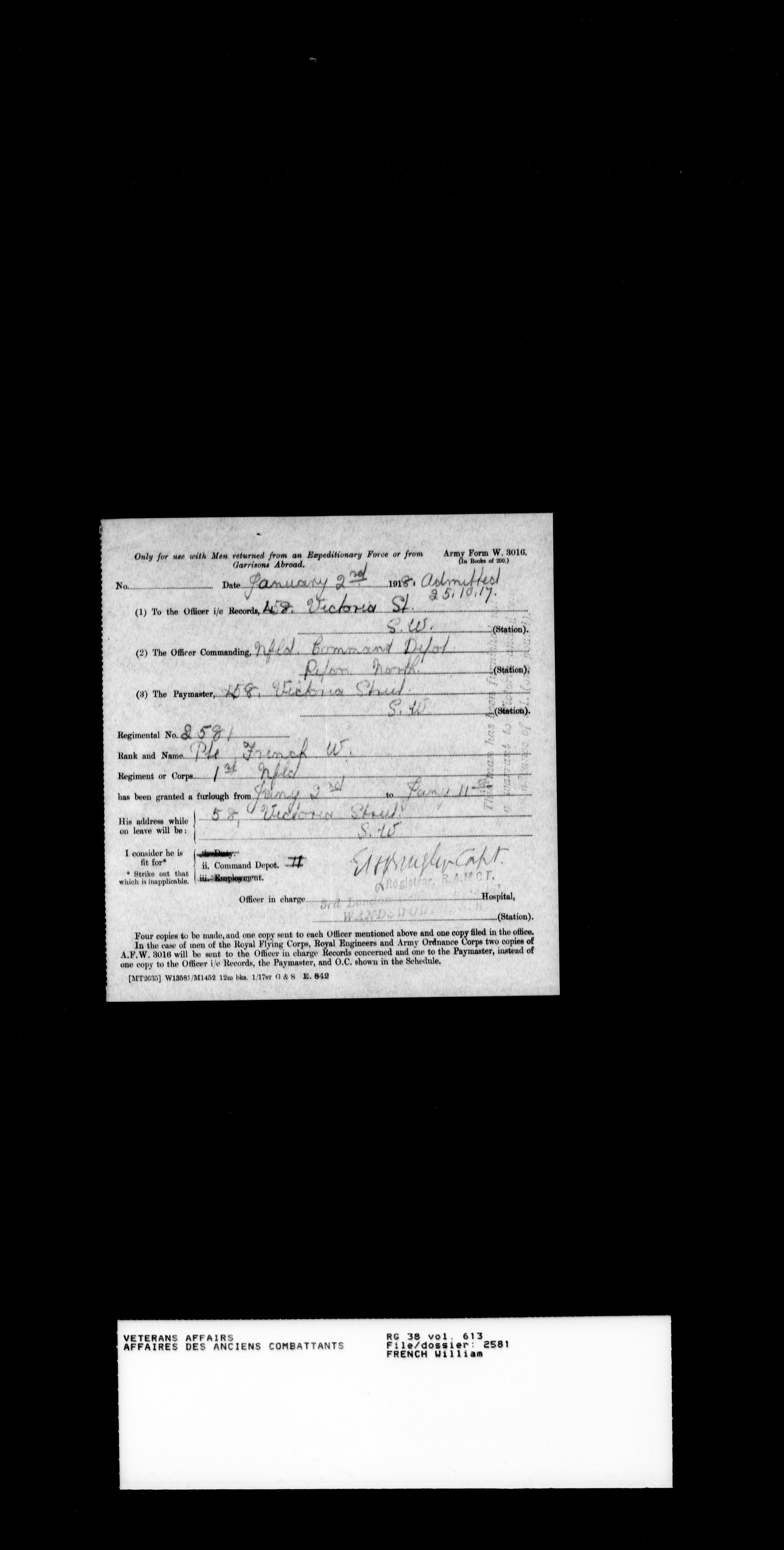 Military service files for members of the Royal Newfoundland Regiment and bandsmen and the Newfoundland Forestry Corps (1914-1919) - 18160