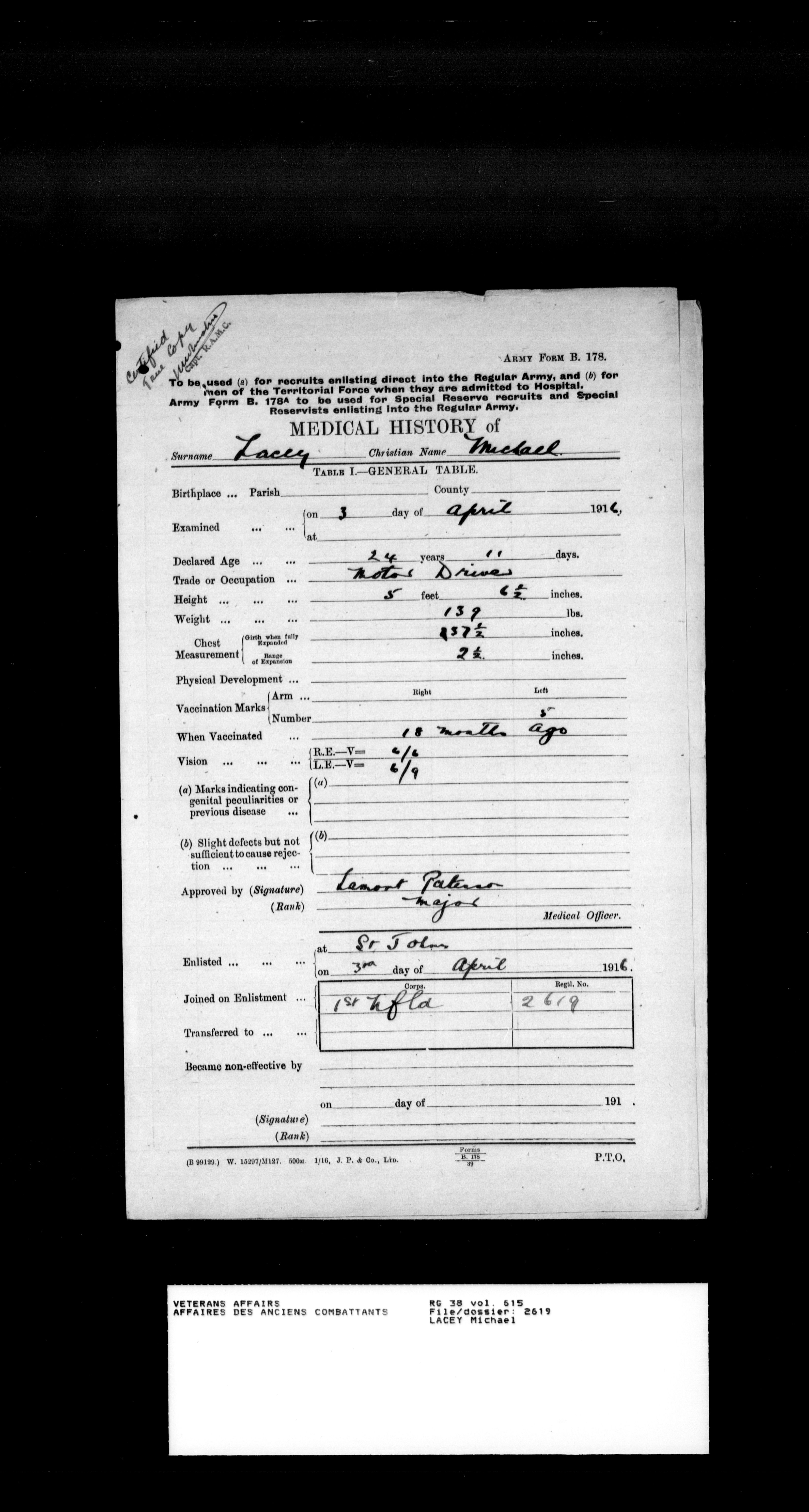 Military service files for members of the Royal Newfoundland Regiment and bandsmen and the Newfoundland Forestry Corps (1914-1919) - 18162