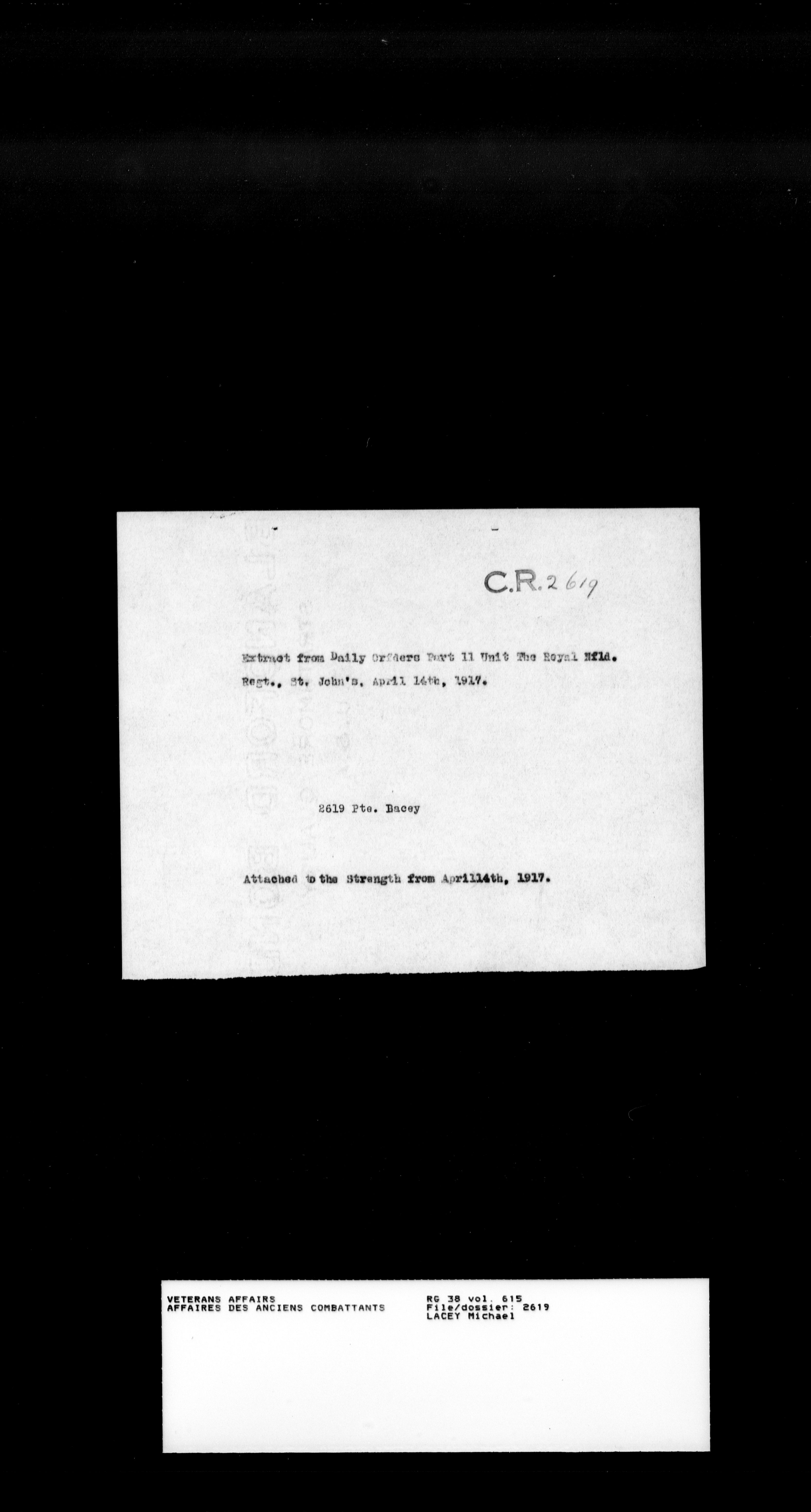 Military service files for members of the Royal Newfoundland Regiment and bandsmen and the Newfoundland Forestry Corps (1914-1919) - 18162