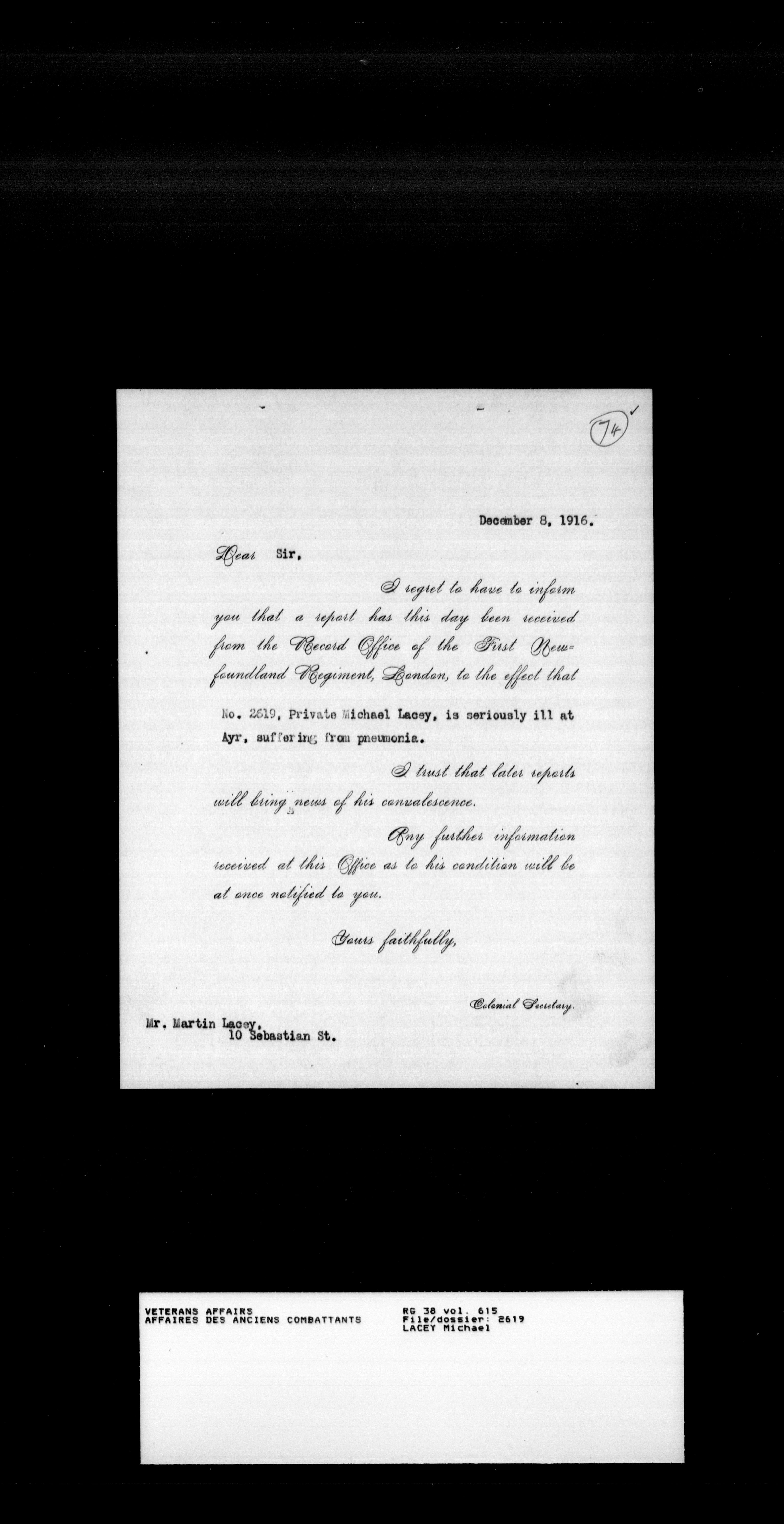 Military service files for members of the Royal Newfoundland Regiment and bandsmen and the Newfoundland Forestry Corps (1914-1919) - 18162