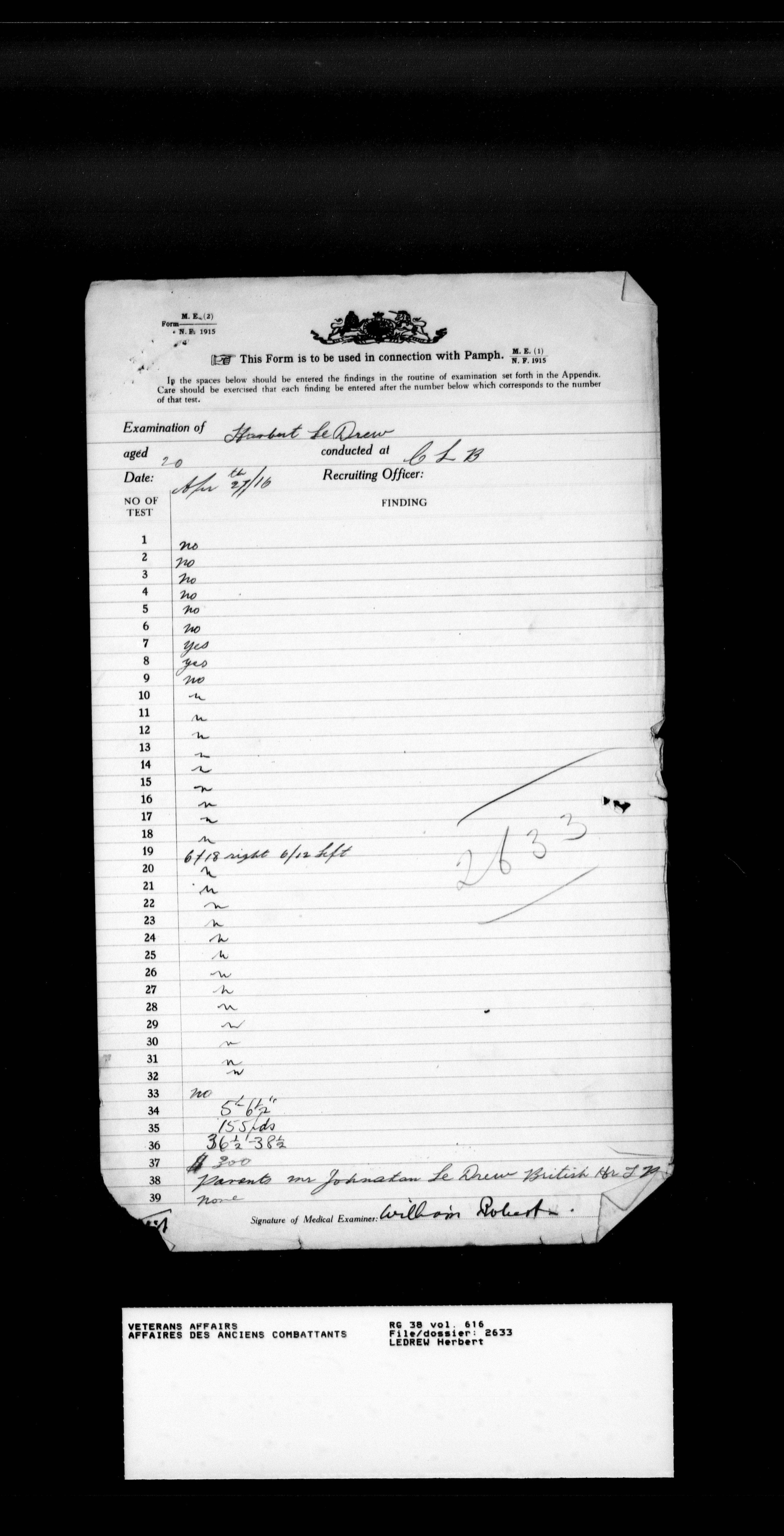 Military service files for members of the Royal Newfoundland Regiment and bandsmen and the Newfoundland Forestry Corps (1914-1919) - 18163
