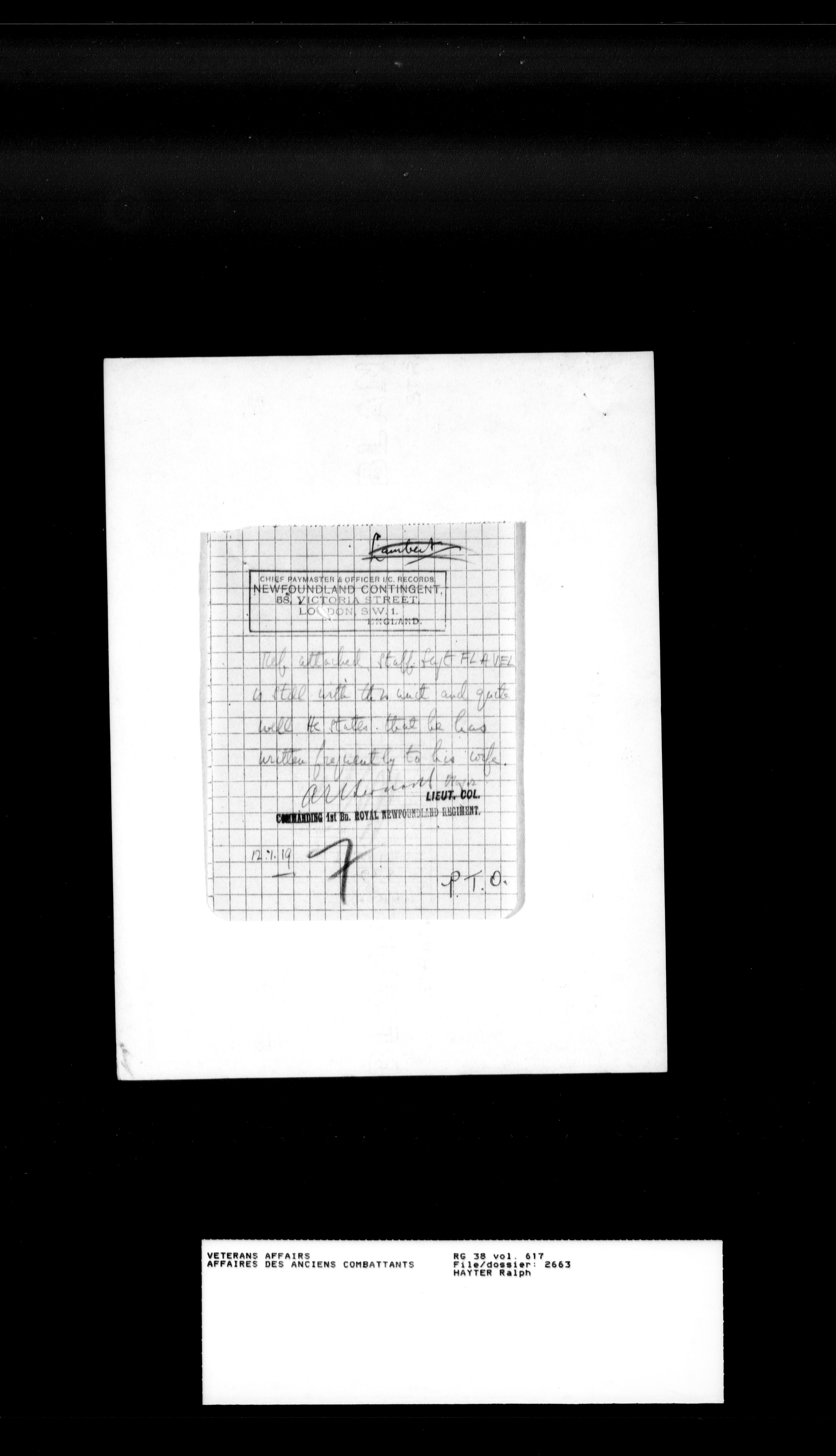 Military service files for members of the Royal Newfoundland Regiment and bandsmen and the Newfoundland Forestry Corps (1914-1919) - 18164