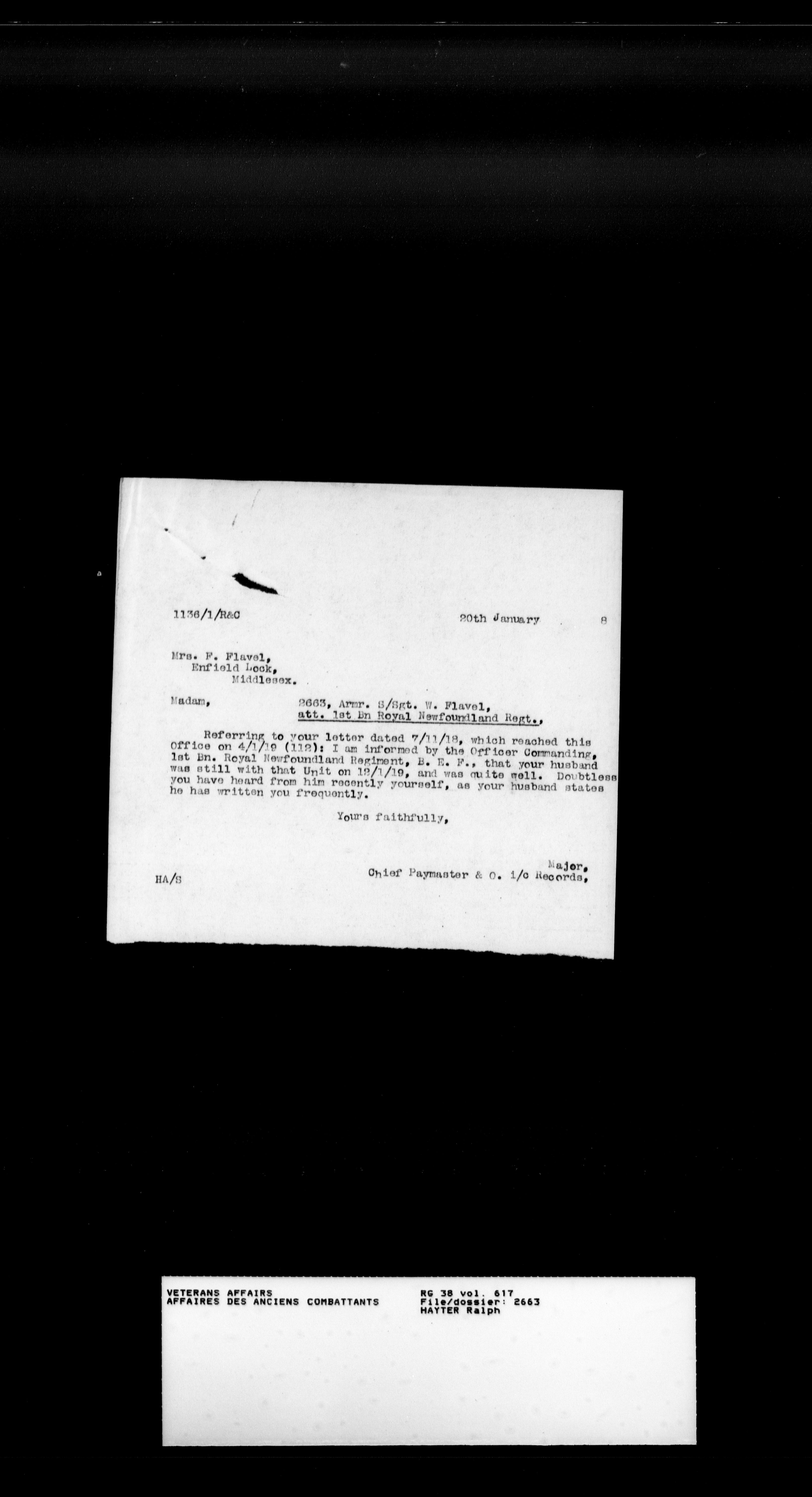 Military service files for members of the Royal Newfoundland Regiment and bandsmen and the Newfoundland Forestry Corps (1914-1919) - 18164