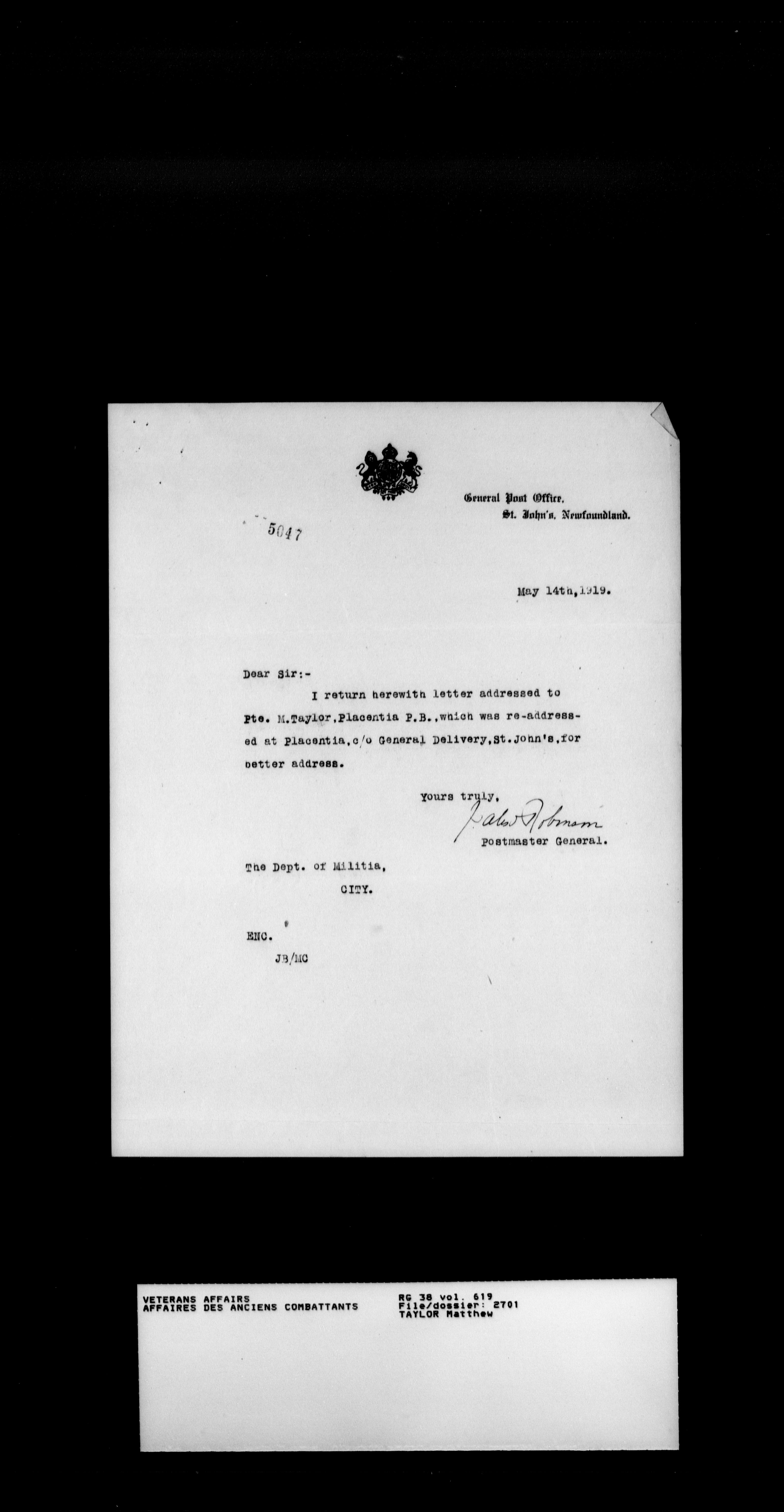 Military service files for members of the Royal Newfoundland Regiment and bandsmen and the Newfoundland Forestry Corps (1914-1919) - 18166