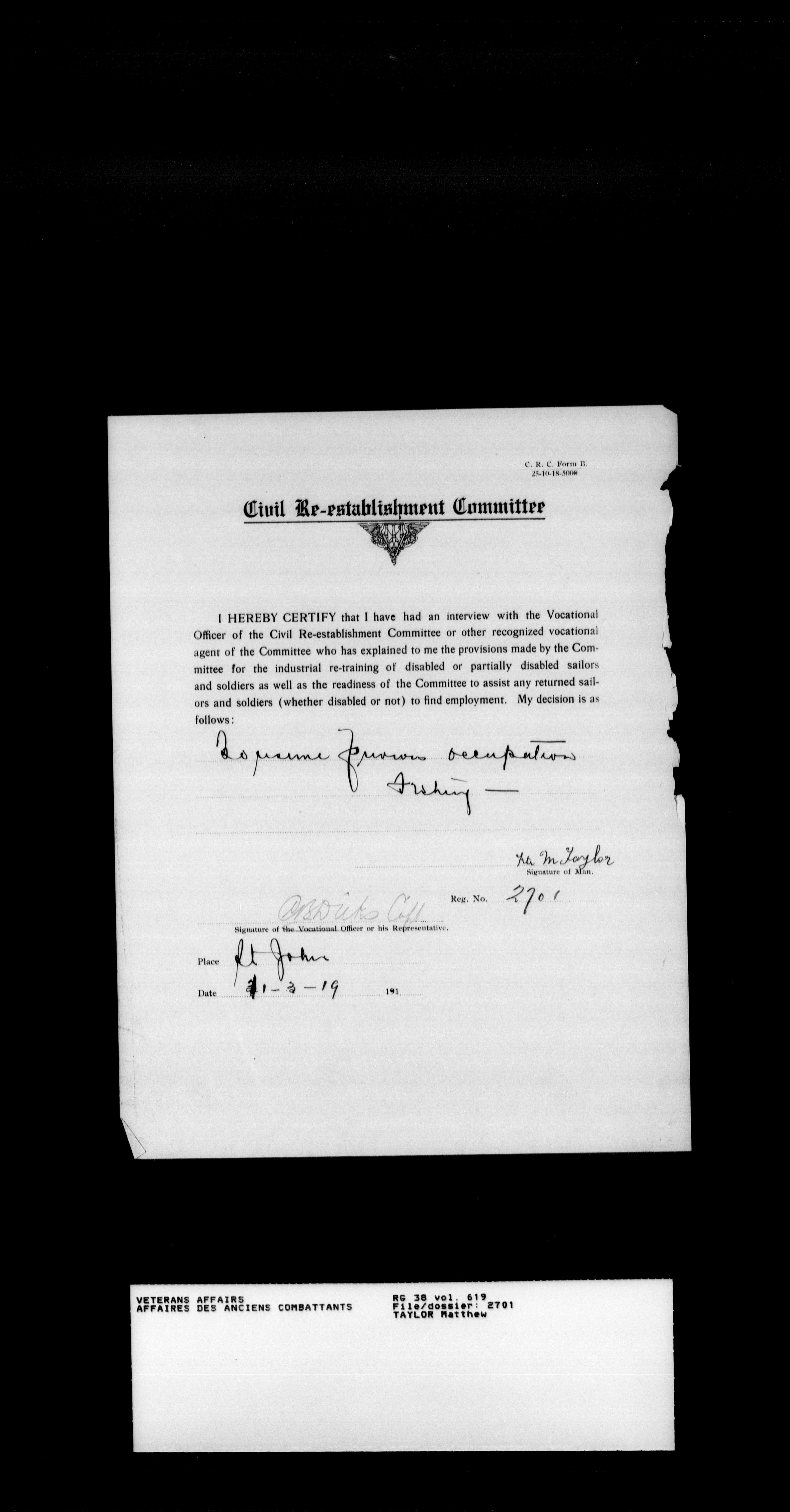 Military service files for members of the Royal Newfoundland Regiment and bandsmen and the Newfoundland Forestry Corps (1914-1919) - 18166
