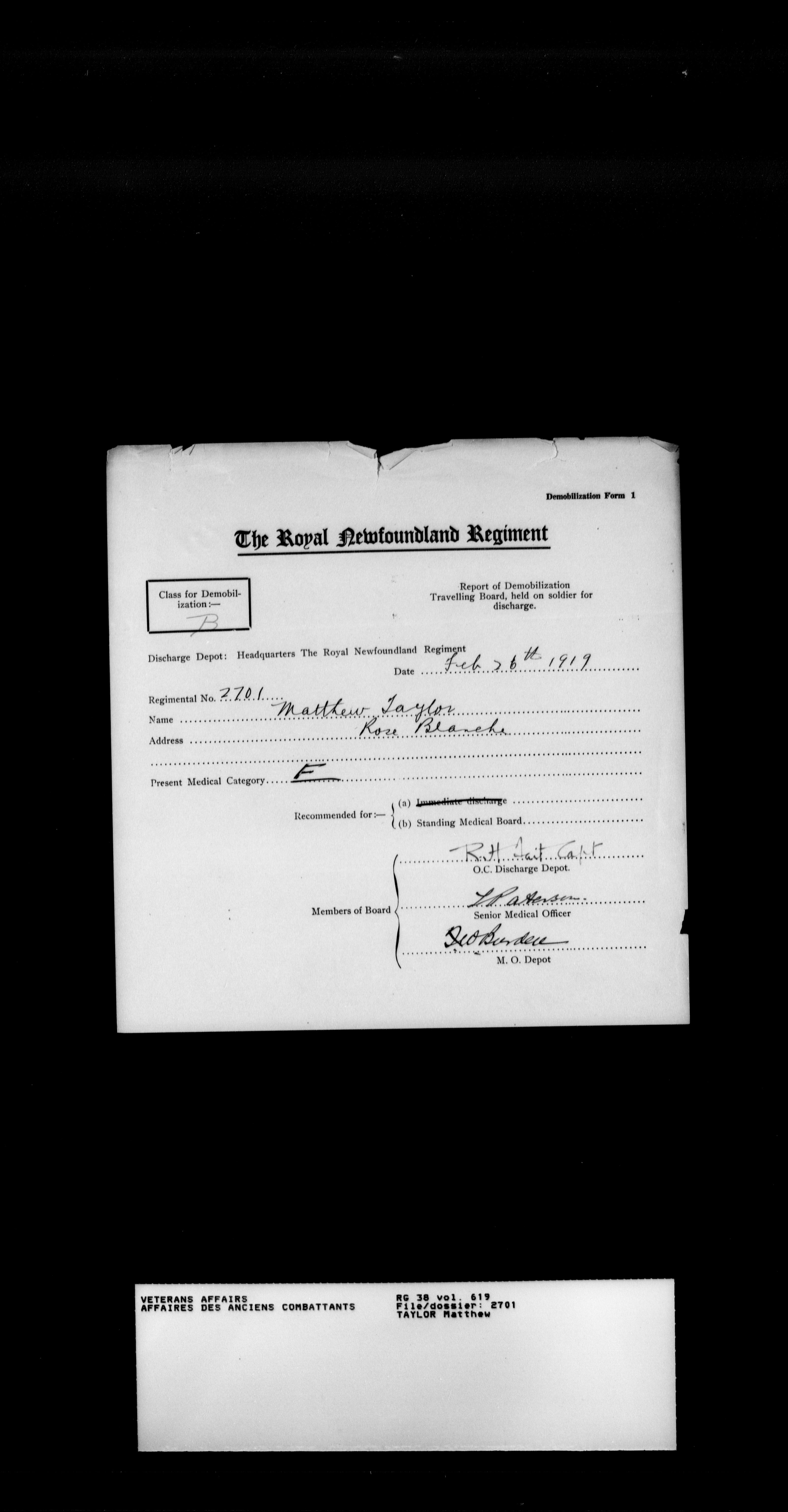 Military service files for members of the Royal Newfoundland Regiment and bandsmen and the Newfoundland Forestry Corps (1914-1919) - 18166