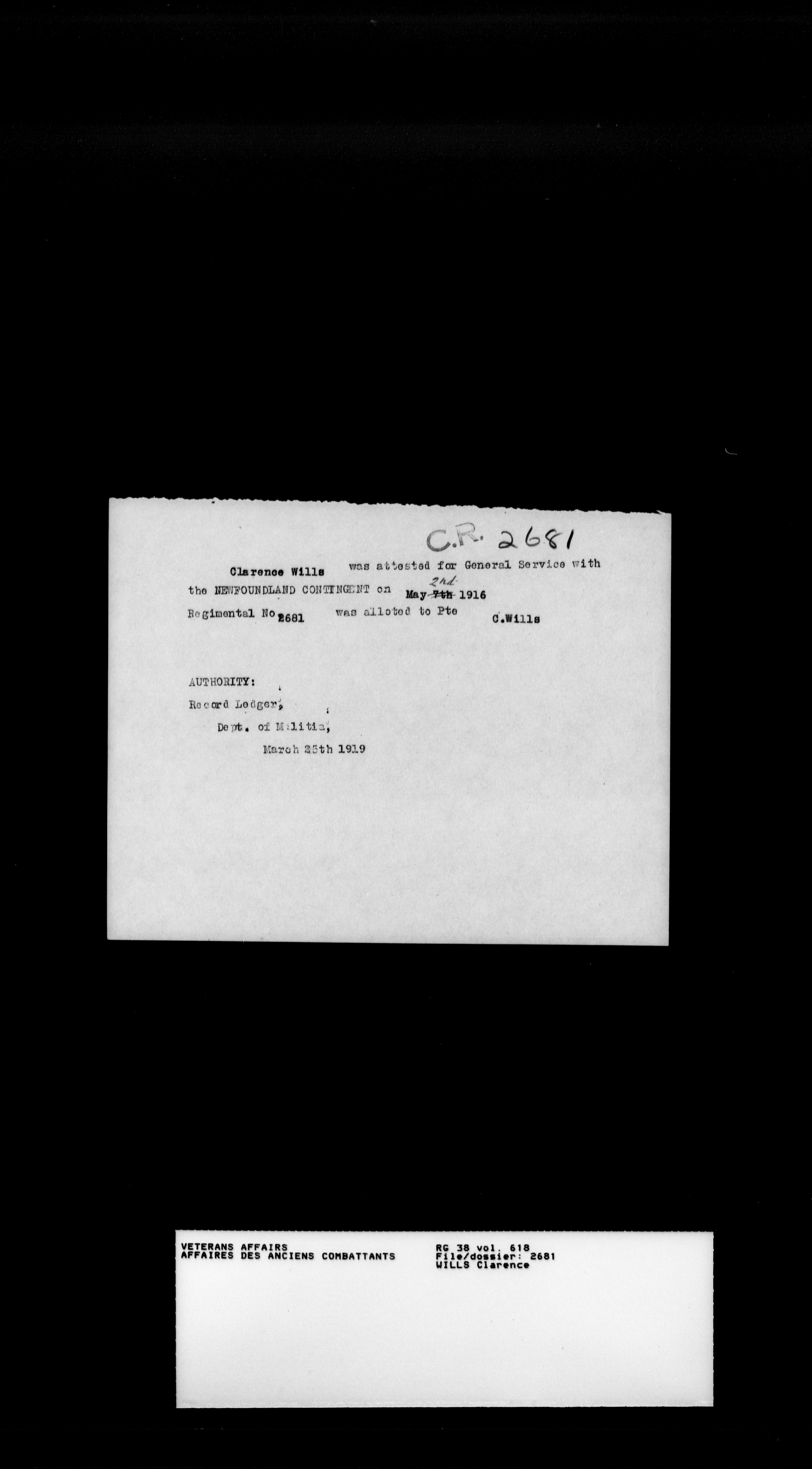 Military service files for members of the Royal Newfoundland Regiment and bandsmen and the Newfoundland Forestry Corps (1914-1919) - 18166