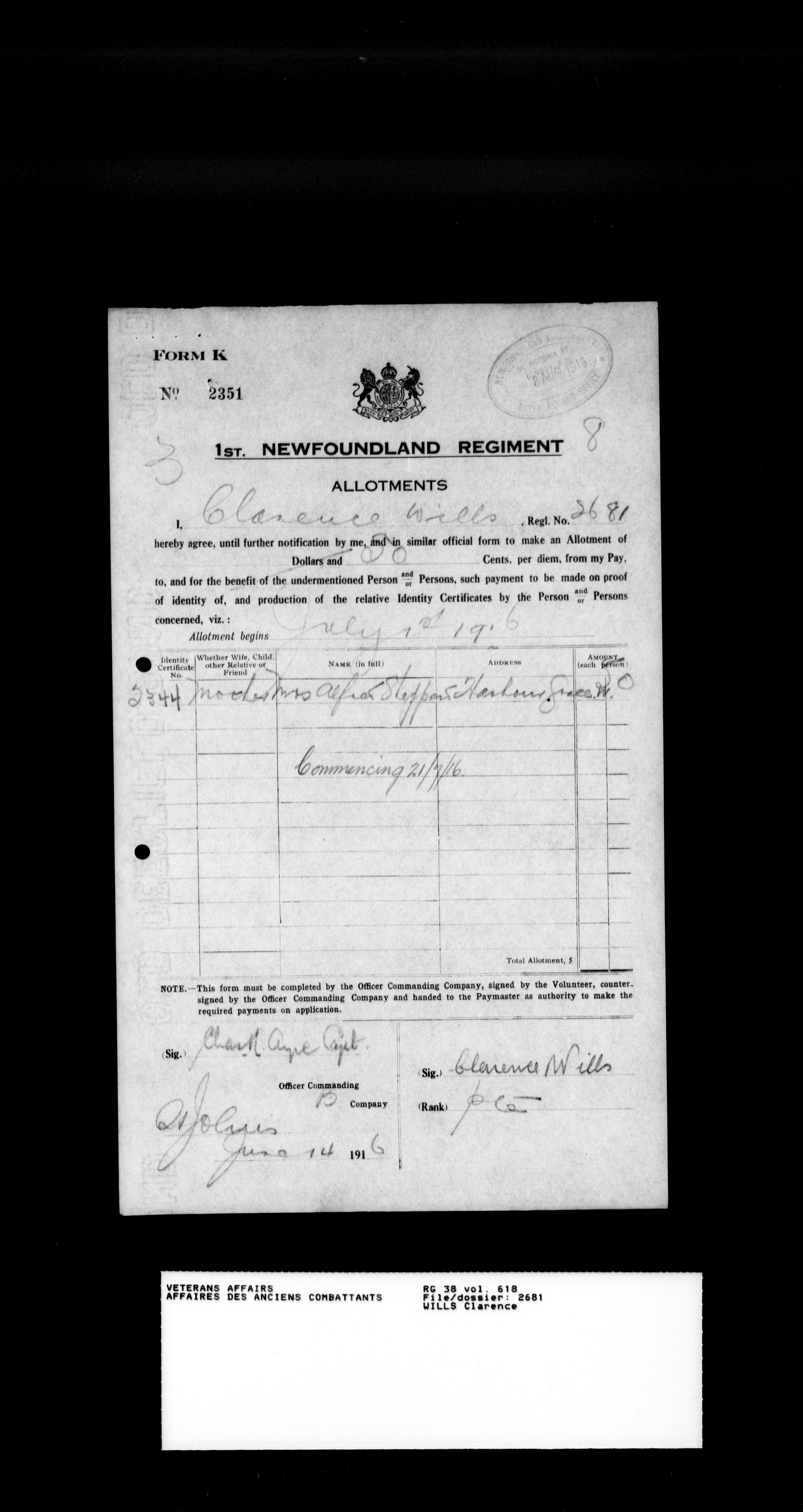 Military service files for members of the Royal Newfoundland Regiment and bandsmen and the Newfoundland Forestry Corps (1914-1919) - 18166