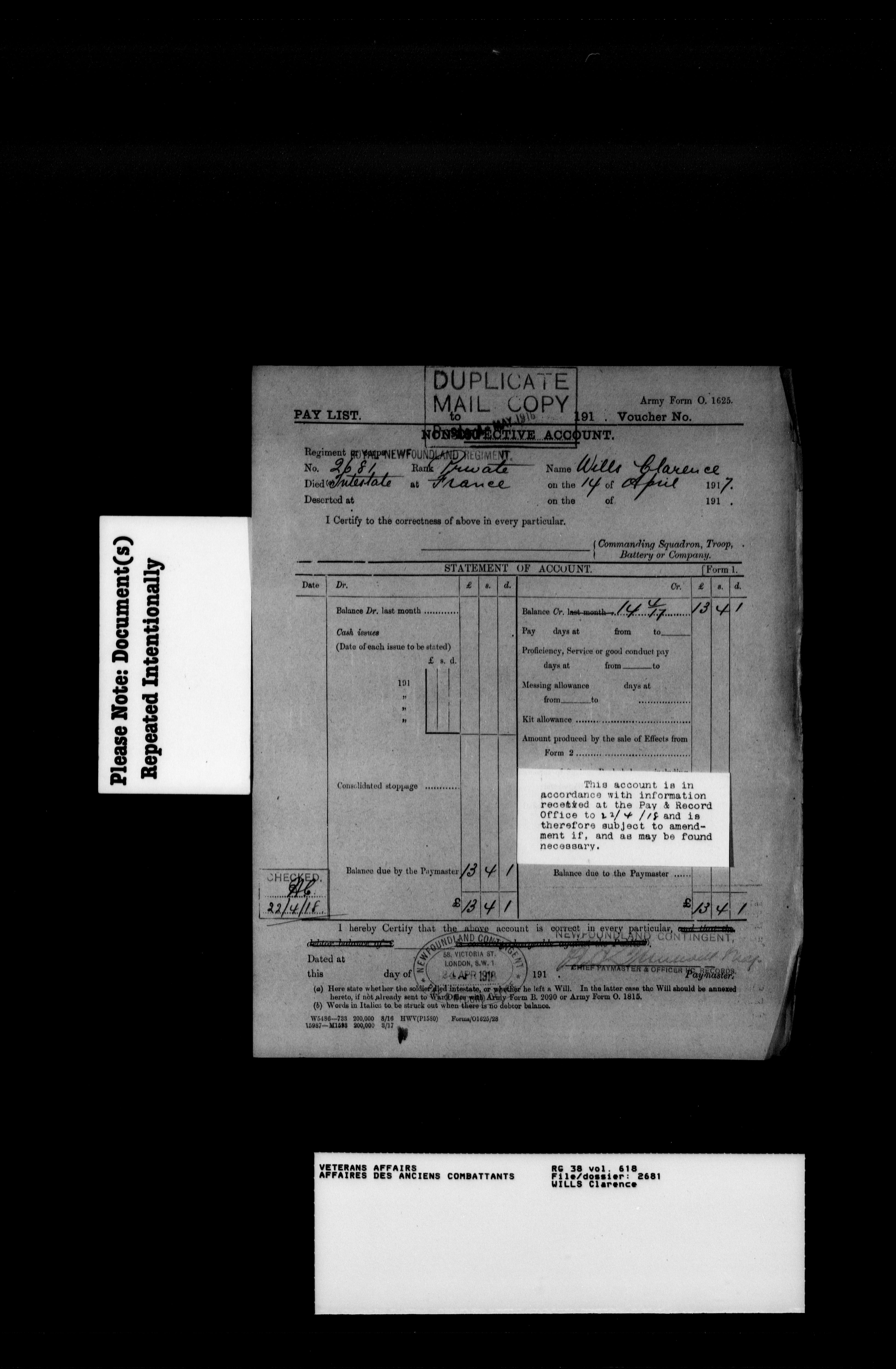 Military service files for members of the Royal Newfoundland Regiment and bandsmen and the Newfoundland Forestry Corps (1914-1919) - 18166